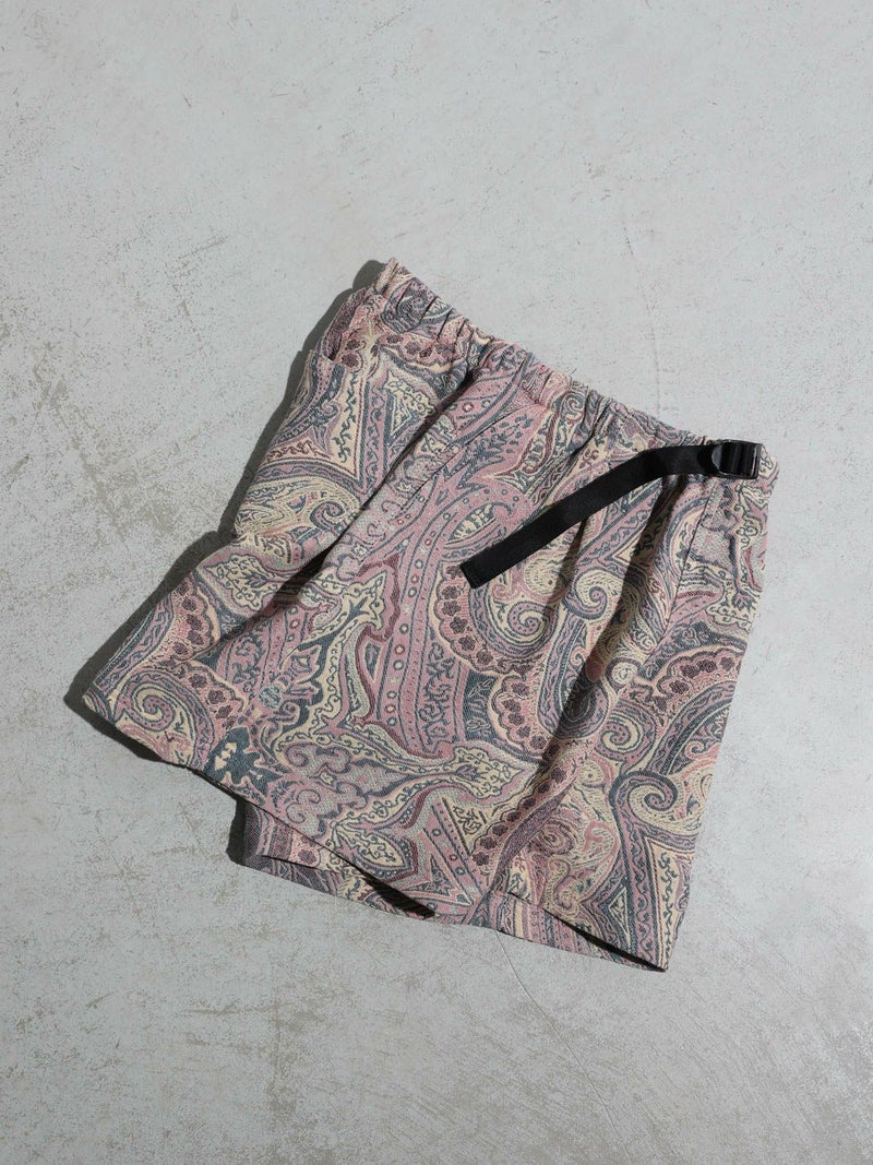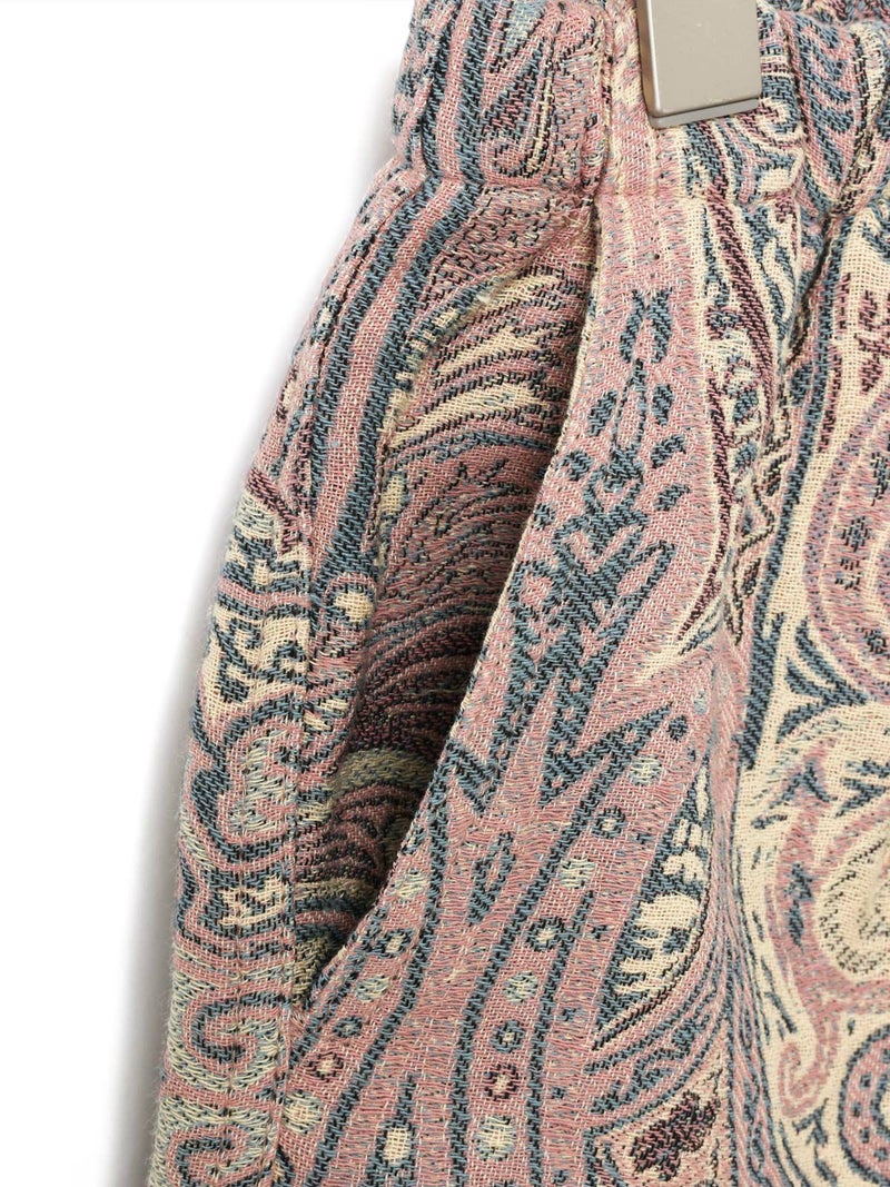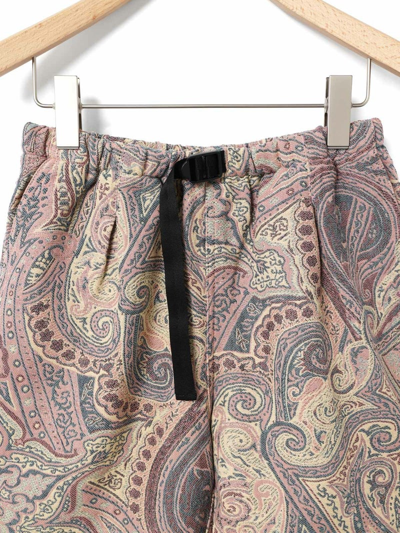 モニタリーのイージーバギーショーツ。印象的なジャガード織りのペイズリー柄が、夏のスタイルをワンランクアップ。柔らかなコットン素材を使用し、ゆったりとしたシルエットで履き心地も良くリラックス感あるアイテムです。ベルトは便利なバックルベルト仕様。