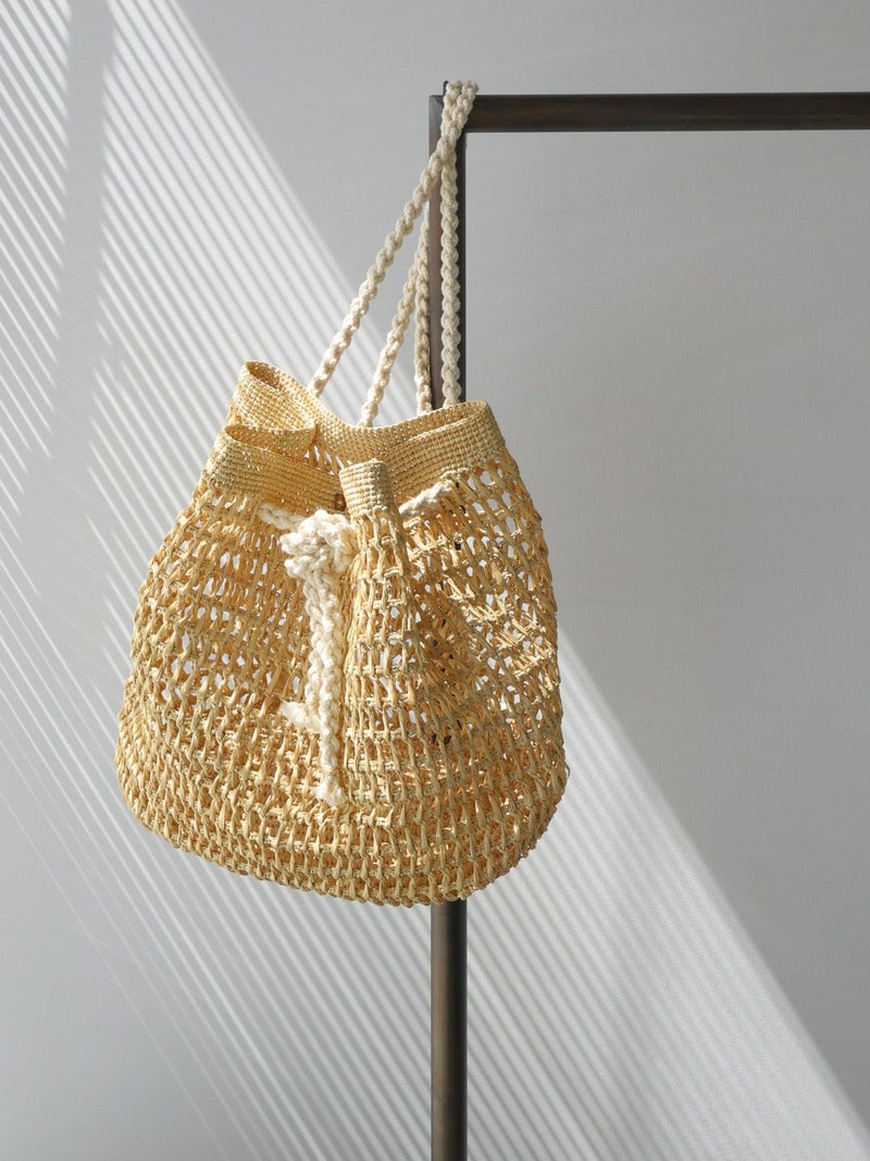 天然のラフィアを編み込んだボディはとても繊細な手仕事でつくられています。