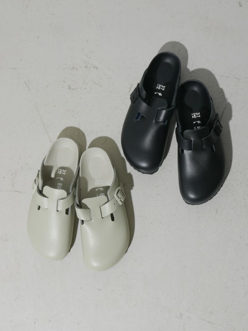 人気の定番クロッグがラグジュリアスなハイエンドモデルで登場。足の形状を考慮した天然ゴム混合コルクフットベッドで疲れにくく、中敷全面は柔らかいピヌマトレザーで覆われていて極上の履き心地です。アッパーには独特の輝きを放つ上質なアニリンレザーを使用、バックルで自由にフィット感を調整できるのもポイント。シーズン問わず通年使いやすいデザインなので、様々なスタイル、シーンでの活躍を期待できる一足です。