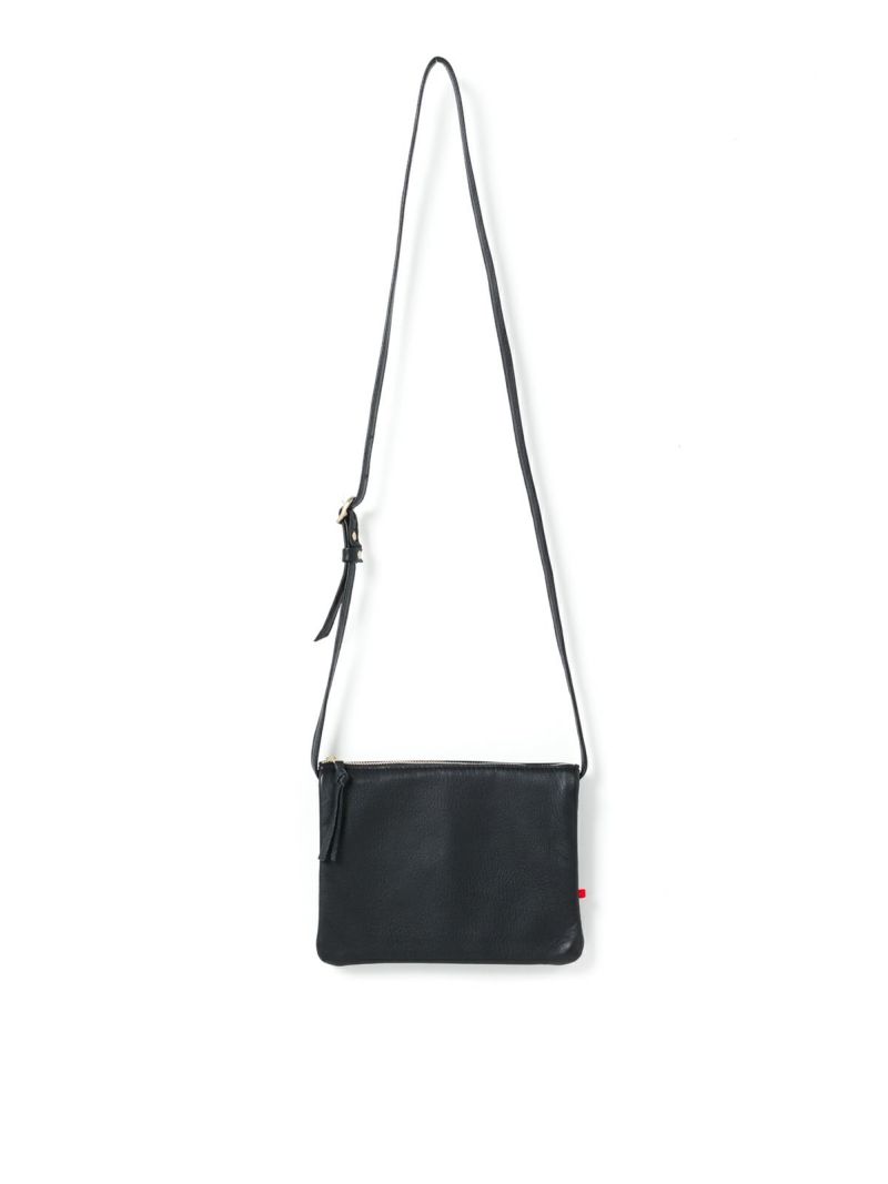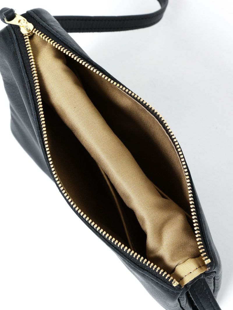 一見シンプルなフォルムでありながら、ファスナーをセンターにして2つ折りにされたデザインは特徴的で存在感があり、コーデのアクセントになるミニサイズのポシェット。2つに分かれた収納が小物を入れるのにはとても使いやすく、バッグの内側にもポケット付きで使い勝手の良さはお墨付き。ショルダーのベルトも調節可能な金具タイプ。なめらかで柔らかな牛革を使用しており使い込むほどに味わい深くなり、経年変化も楽しむことができる。収納布bag付き。