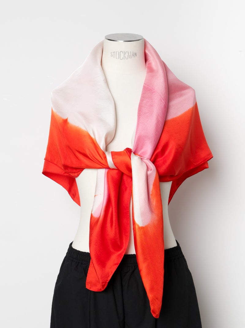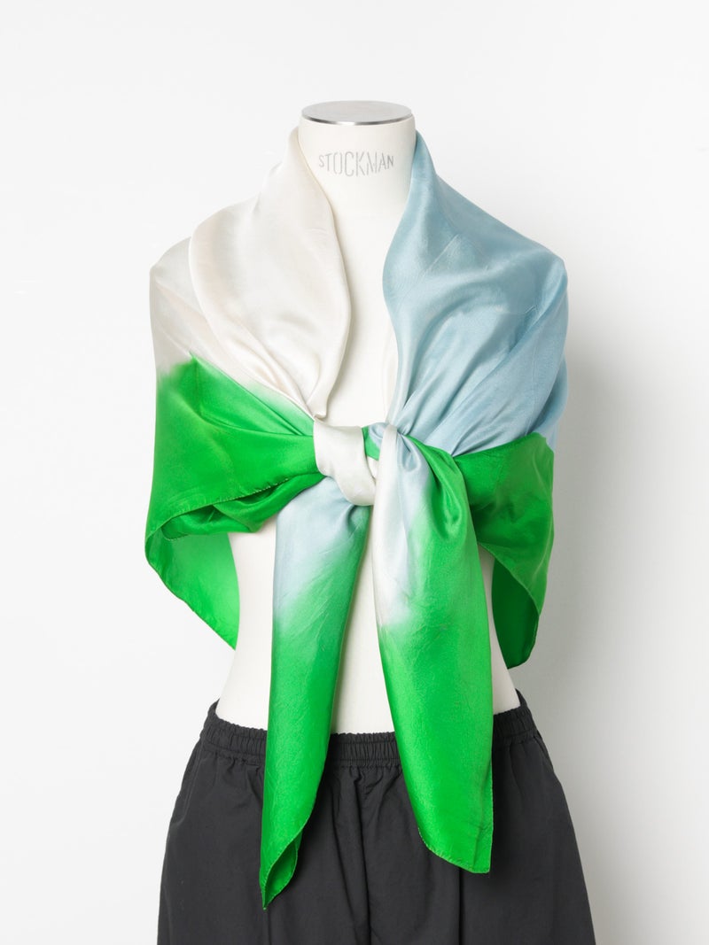 シルク100%ならではのなめらかな肌触りと、上品な光沢が魅力のストール。やわらかなグラデーションカラーが、スタイリングに軽やかなアクセントを添えます。「板締め絞り」などの伝統的な染色技法を用い、一枚一枚染め上げられているため、それぞれ異なる風合いをお楽しみいただけます。軽く巻いたり、肩掛けにしたりとアレンジしやすく、装いにさりげない華やかさをプラスします。春夏の冷房対策や日除け、秋口の軽い防寒にもおすすめです。