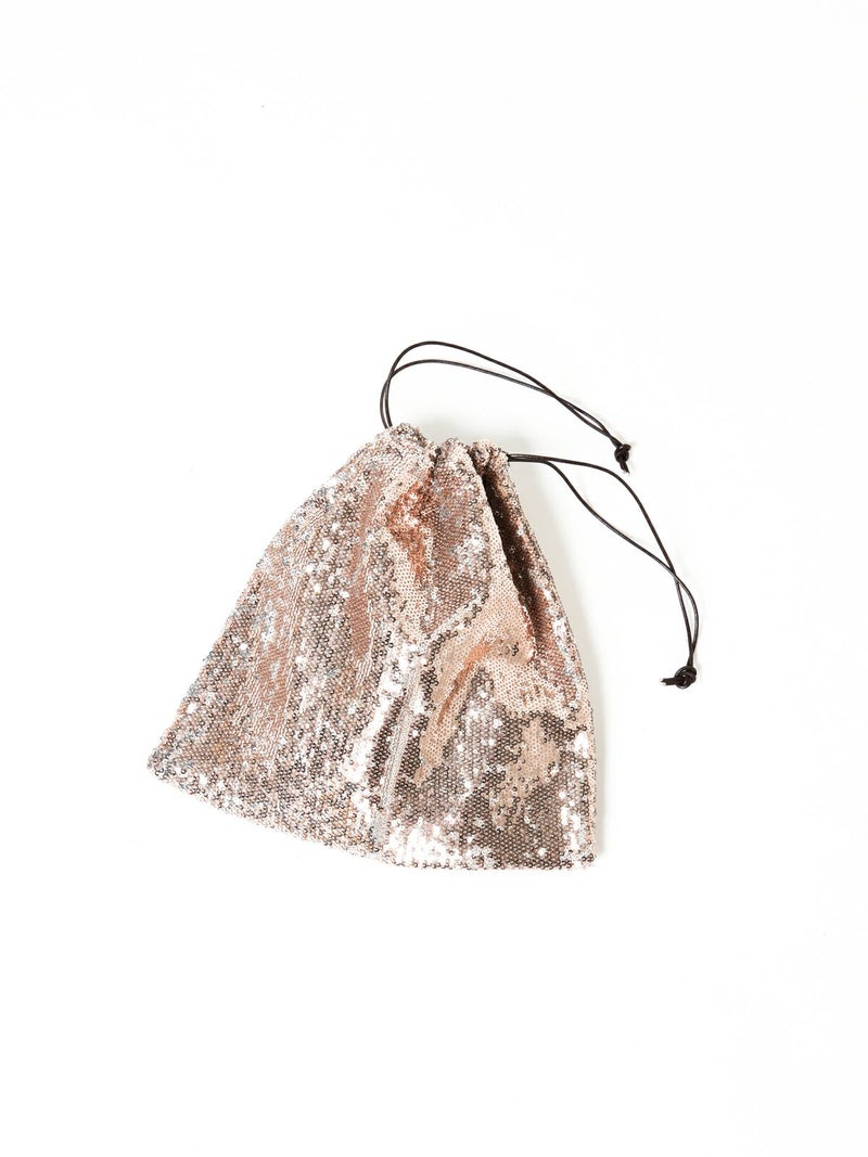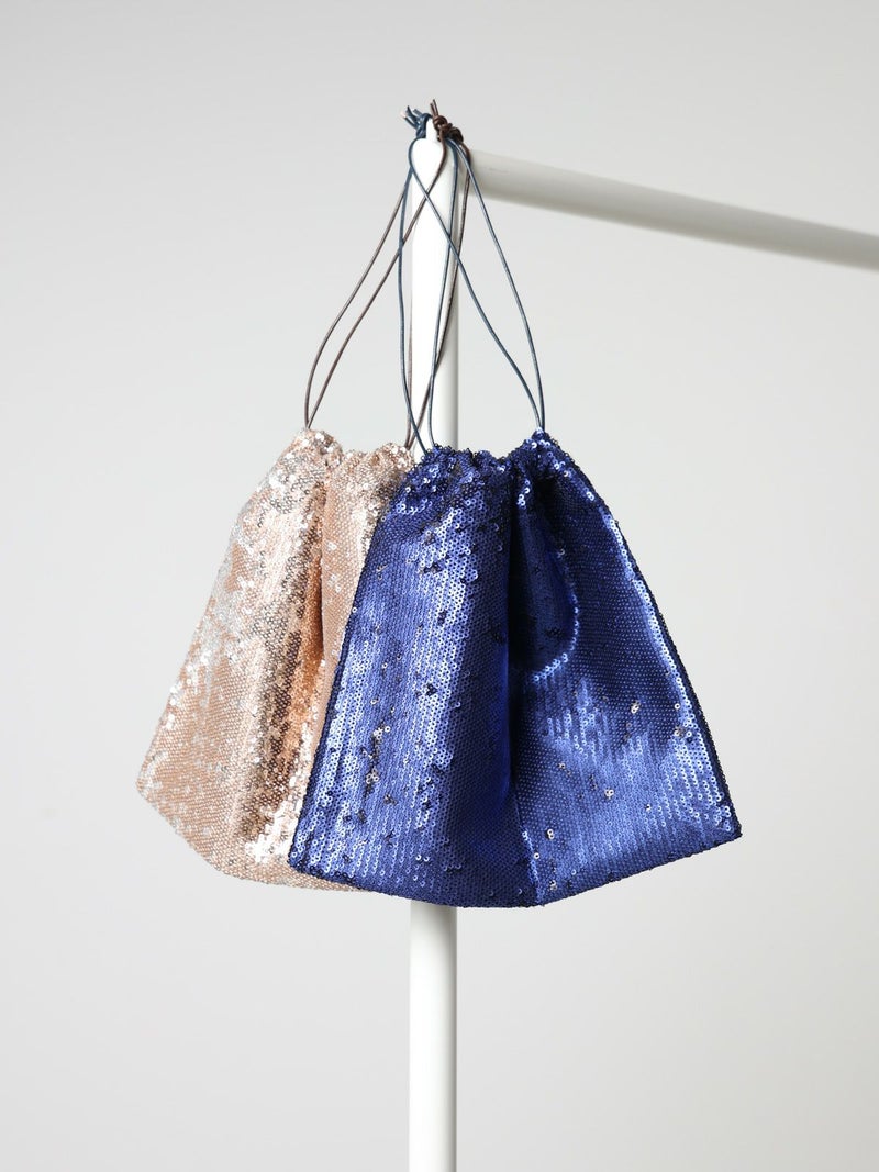 スパンコールの華やかさが際立つ巾着ポーチです。クラシックでありながらモダンな魅力があります。上質な素材を使用しイタリアの職人によって丁寧に仕上げられています。シンプルで洗練されたデザインが特徴で日常使いから特別なシーンまで幅広く活躍します。コンパクトながら十分な収納力がありコーディネートに華やかさを添えるアイテムです。