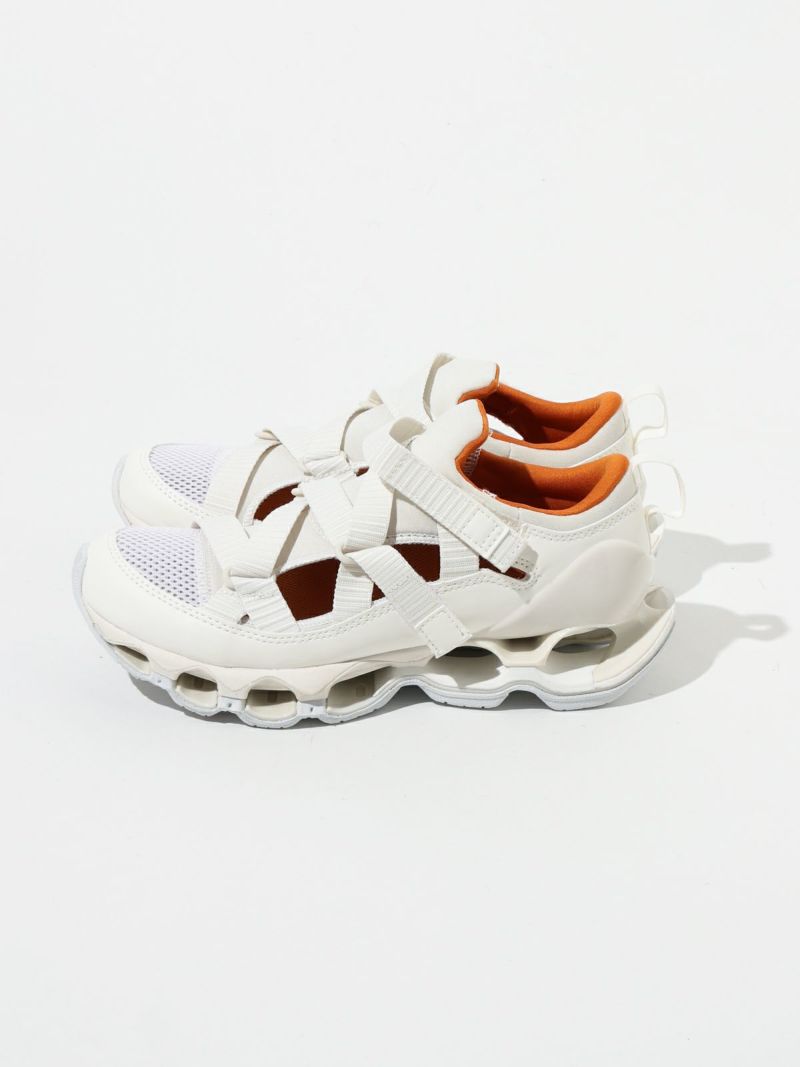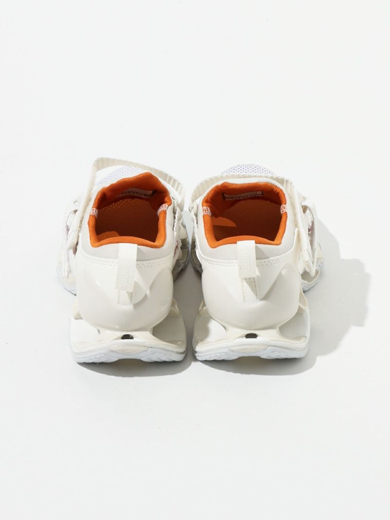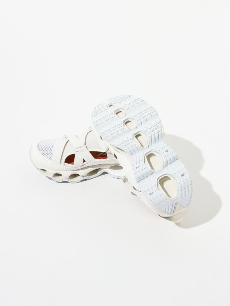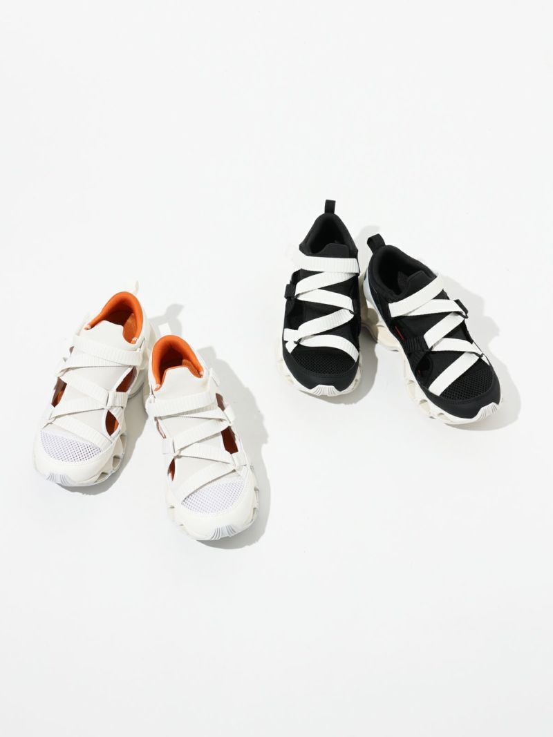 ストラップサンダルの気軽さとスニーカーの快適さを兼ね備えた、ミズノの最新ハイブリッドモデル。陸上用スパイクから着想を得たデザインで、フィット感と動きやすさにこだわった一足。ミズノ独自の“インフィニティウエーブ”ソールをフルレングスで搭載しており、高いクッション性とその持続力が魅力です。軽量でクッション性に優れたミッドソールや、耐久性の高いアウトソール素材を採用し、長時間の歩行でも快適。中敷き部分にはやわらかなスポンジ素材を使い、足あたりもふんわりと気持ちよく。サンダルのラフさとスニーカーのサポート力を両立しており、街歩きからレジャーシーンまで幅広く活躍します。デザイン性も高く、スタイリングのアクセントにもぴったりです。やや細みのデザインでワンサイズ上の着用がおすすめです。
