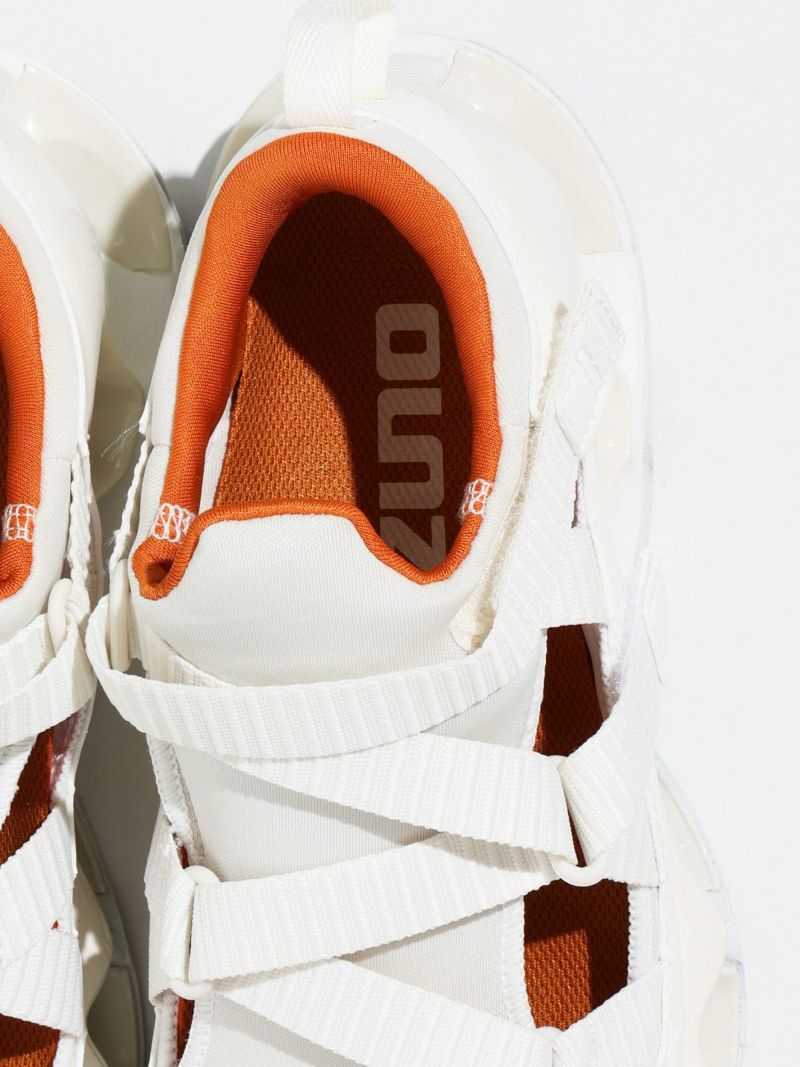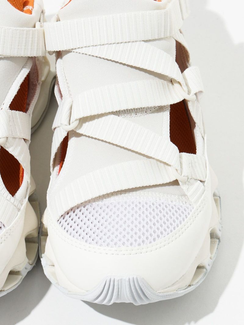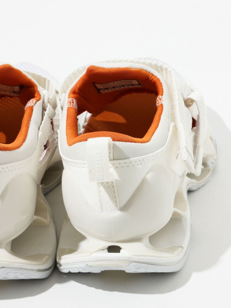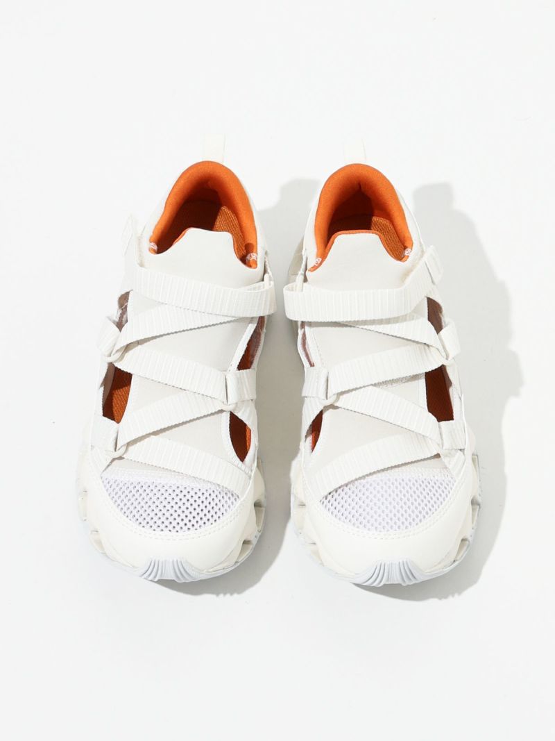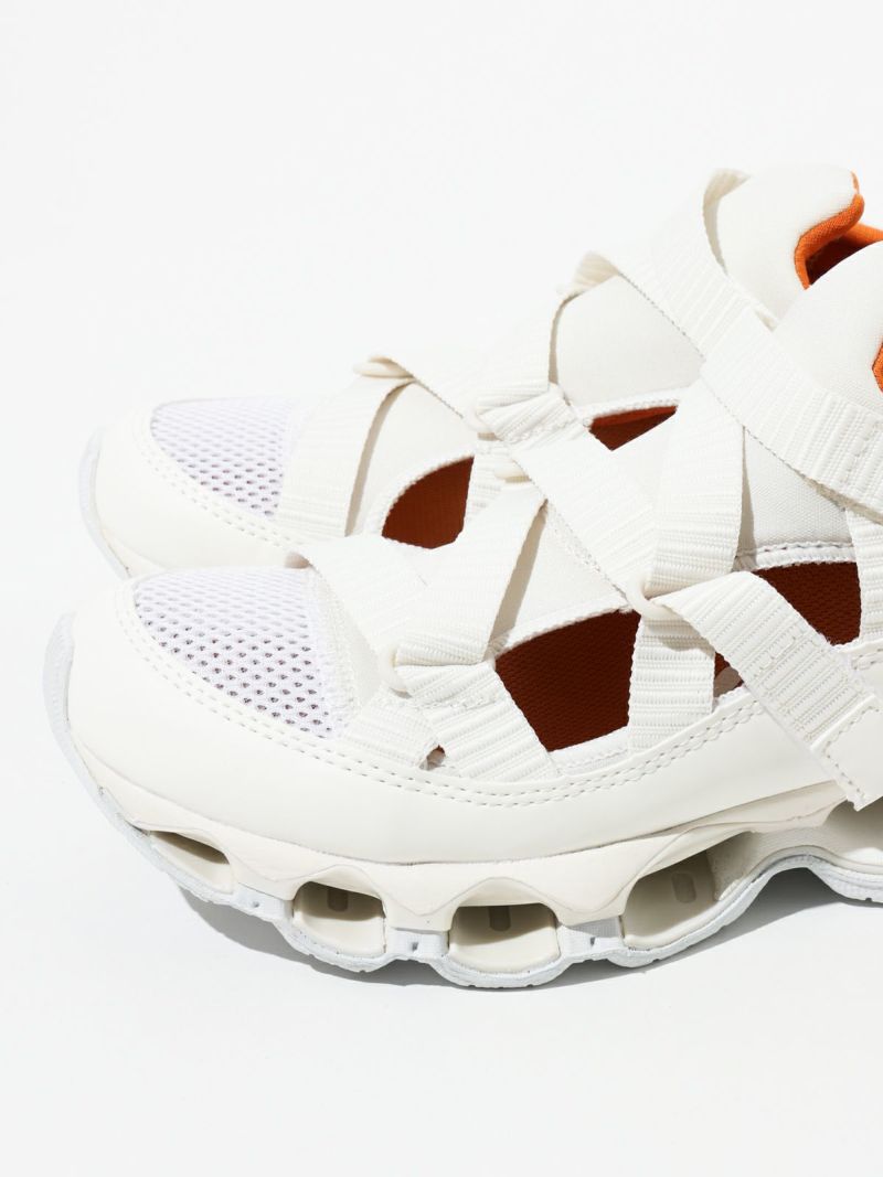 ストラップサンダルの気軽さとスニーカーの快適さを兼ね備えた、ミズノの最新ハイブリッドモデル。陸上用スパイクから着想を得たデザインで、フィット感と動きやすさにこだわった一足。ミズノ独自の“インフィニティウエーブ”ソールをフルレングスで搭載しており、高いクッション性とその持続力が魅力です。軽量でクッション性に優れたミッドソールや、耐久性の高いアウトソール素材を採用し、長時間の歩行でも快適。中敷き部分にはやわらかなスポンジ素材を使い、足あたりもふんわりと気持ちよく。サンダルのラフさとスニーカーのサポート力を両立しており、街歩きからレジャーシーンまで幅広く活躍します。デザイン性も高く、スタイリングのアクセントにもぴったりです。やや細みのデザインでワンサイズ上の着用がおすすめです。