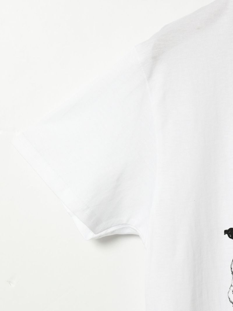 犬のプリントがアクセントのTシャツ。ゆったりとしたベーシックなシルエットで、リラックス感のある着こなしに。薄手のさらりとした生地が心地よく、暑い季節も快適に過ごせます。シンプルながらも遊び心のあるデザインで、カジュアルスタイルのポイントになる一枚です。