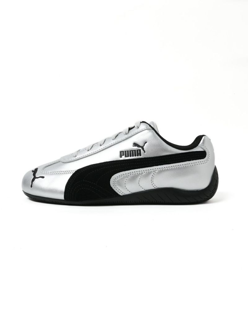 レーシングカルチャーにインスパイアされたプーマの定番モデル「スピードキャット」に、上品なメタリックデザインを施した特別な一足。モータースポーツ由来のすっきりとしたシルエットと、柔らかなレザーアッパーが特徴。足にしなやかにフィットし、長時間の着用でも快適な履き心地を実現。シンプルながらも先端に施されたプーマキャットロゴや、光沢感あるメタリックアクセントが足元をスタイリッシュに演出。カジュアルからスポーティ、ストリートスタイルまで幅広く合わせやすい万能スニーカーです。