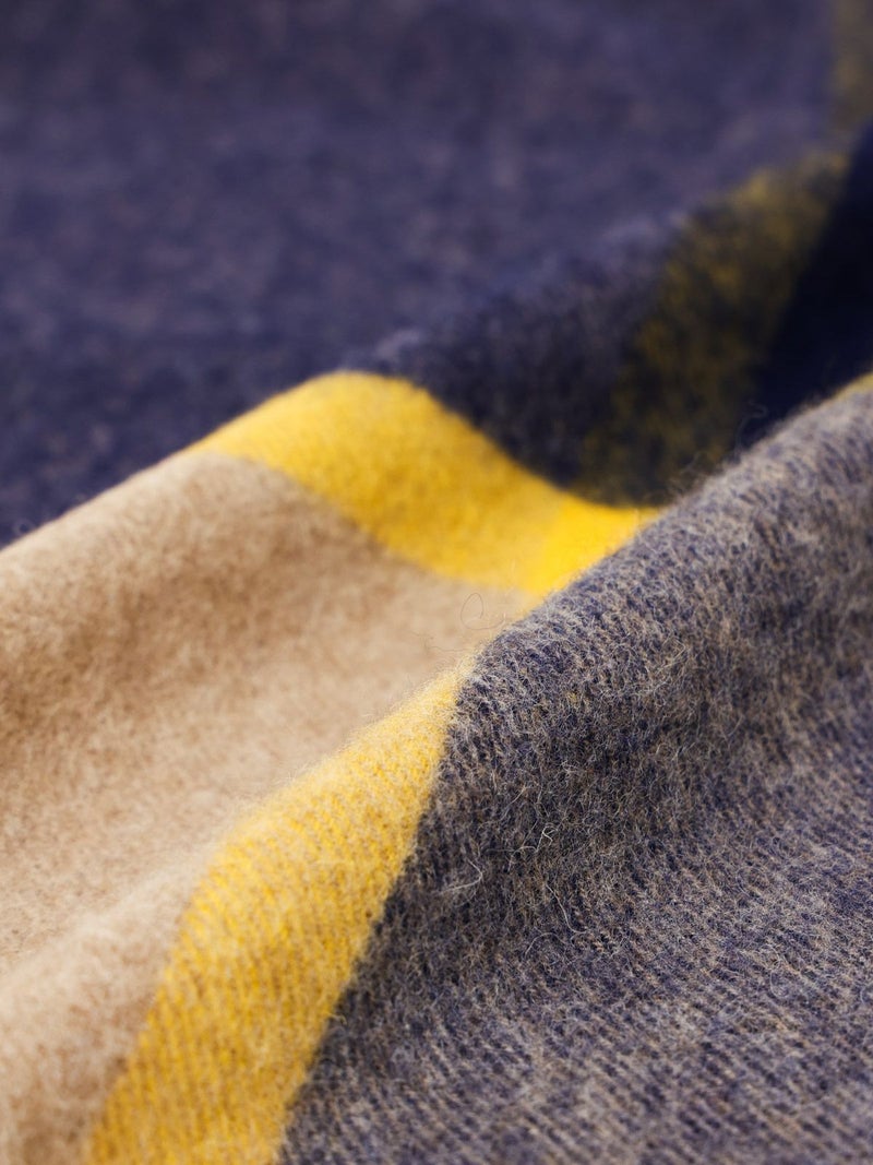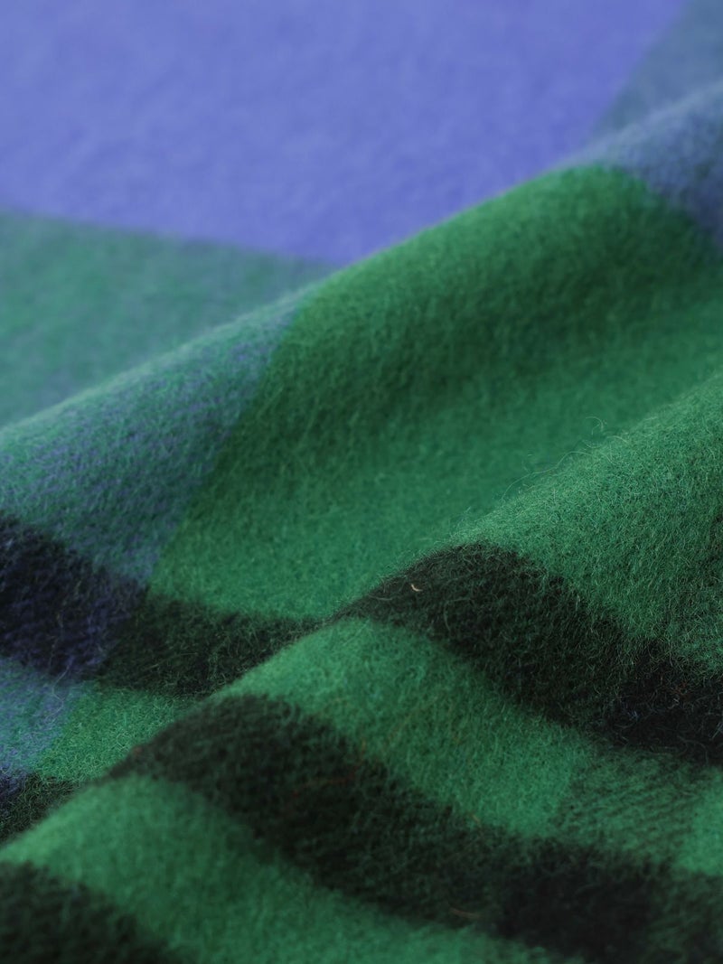 英国製ならではの上質なピュアニューウールを使用した、大判ウールストール。柔らかく保温性に優れた仕上がりです。存在感のあるチェック柄と豊かなフリンジデザインが、コーディネートのアクセントに最適。軽やかなのにしっかり暖かく、ユニセックスでもお使いいただけ、デイリーにもギフトにもおすすめの一枚です。