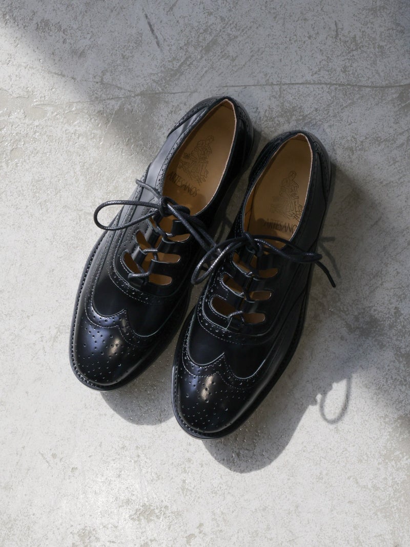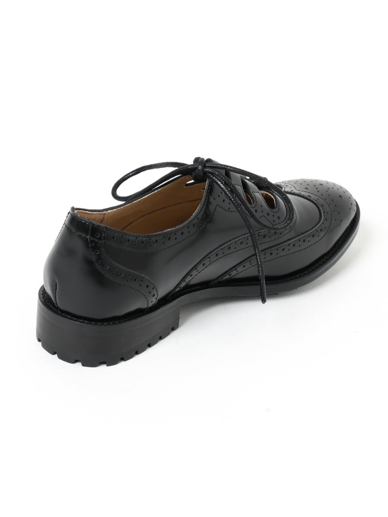 上質なレザーを使用した、クラシカルな佇まいのレースアップシューズ。カットワークのディテールがほどよい抜け感を生み出し、重たくなりすぎない印象に仕上げています。程よく厚みのあるソールで安定感があり、デイリーに取り入れやすい一足。パンツスタイルにはもちろん、スカートやワンピースにも合わせやすく、幅広いスタイリングに活躍します。