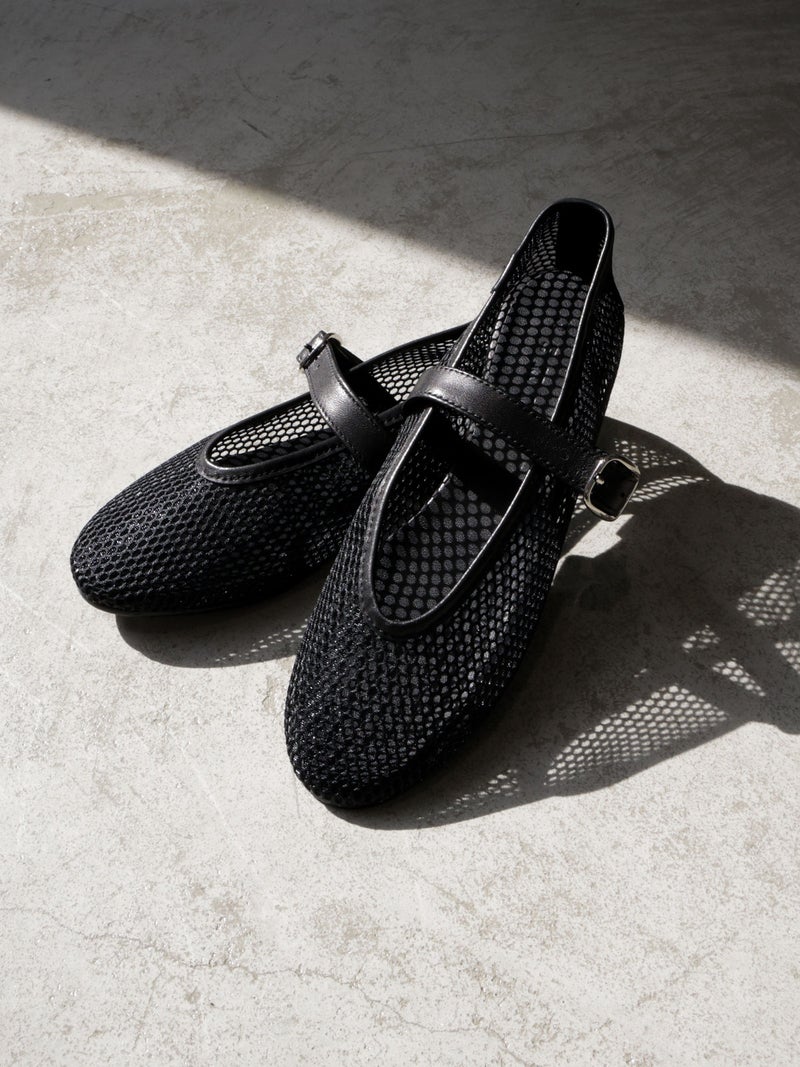 繊細な透け感のあるメッシュ素材が、足元に軽やかな季節感を添えるフラットシューズ。通気性の良いメッシュ素材を使用し、見た目にも涼やかで軽快な履き心地に仕上げました。ストラップ付きのメリージェーンタイプで、安定感がありながら女性らしい印象に。フラットなソールでデイリーに取り入れやすく、パンツからスカートまで幅広いスタイリングに馴染む一足です。