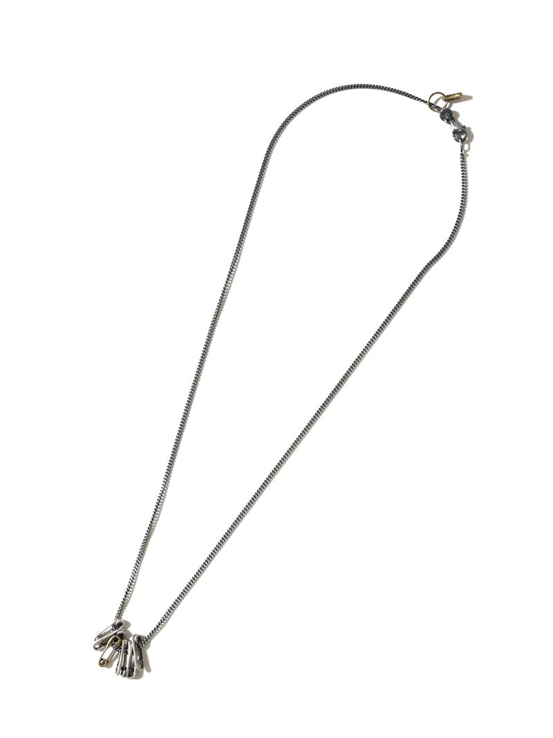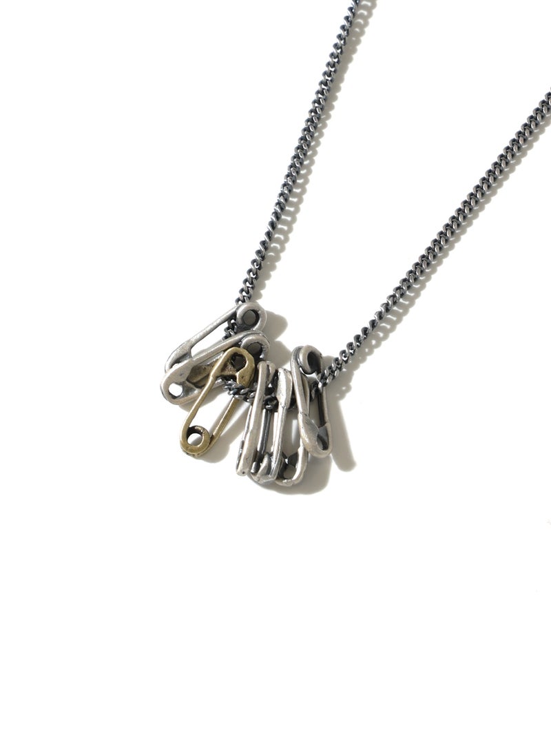 スナッピンモチーフを連ねたユニークなデザインのネックレス。異なるカラーのピンを組み合わせることで程よい存在感を演出し、シンプルなスタイリングのアクセントとして活躍。遊び心のあるデザインがコーディネートに個性を添えるアイテムです。