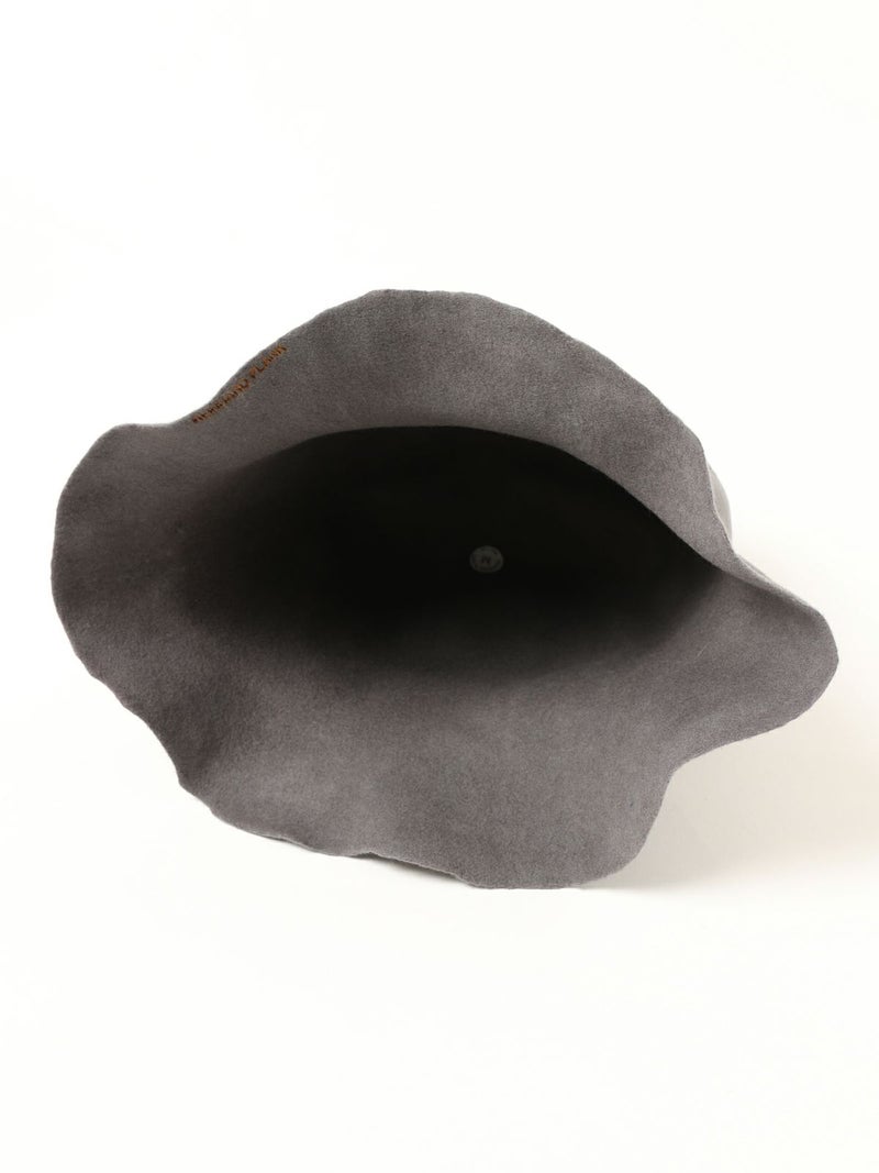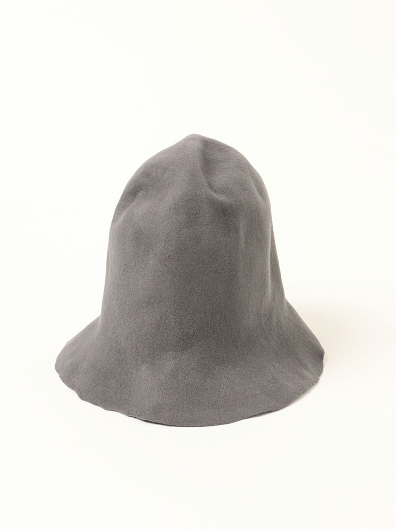 高さのあるデザインが特徴的なウールハットです。しっかりとしたフェルトウール素材。切りっぱなしのつばデザインとランダムなぼこぼことした素材感新鮮。