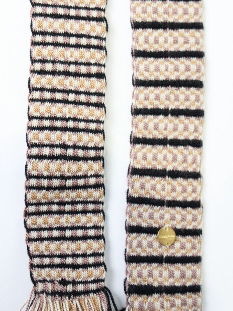南米コロンビアのワユー族に代々受け継がれる手編みの柄がお洒落なベルトです。複雑な編み目でしっかりとしていながら柔らかでハンドメイドの温かみを感じさせる1本。デニムなどシンプルなアイテムによく合います。