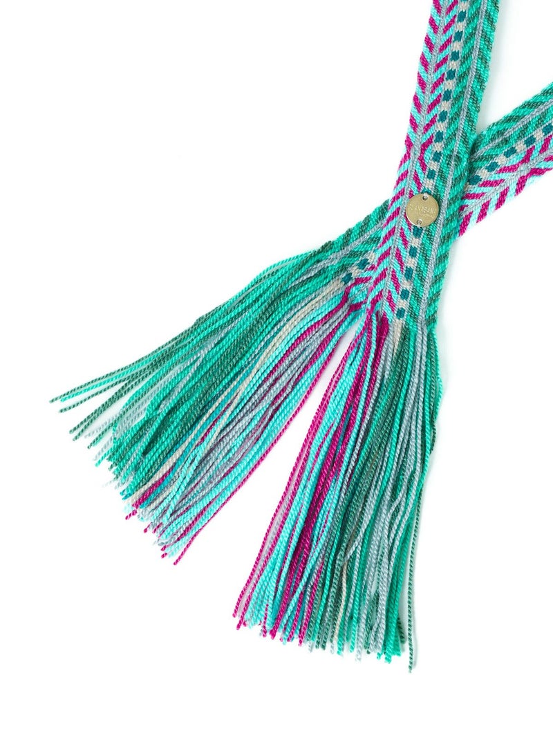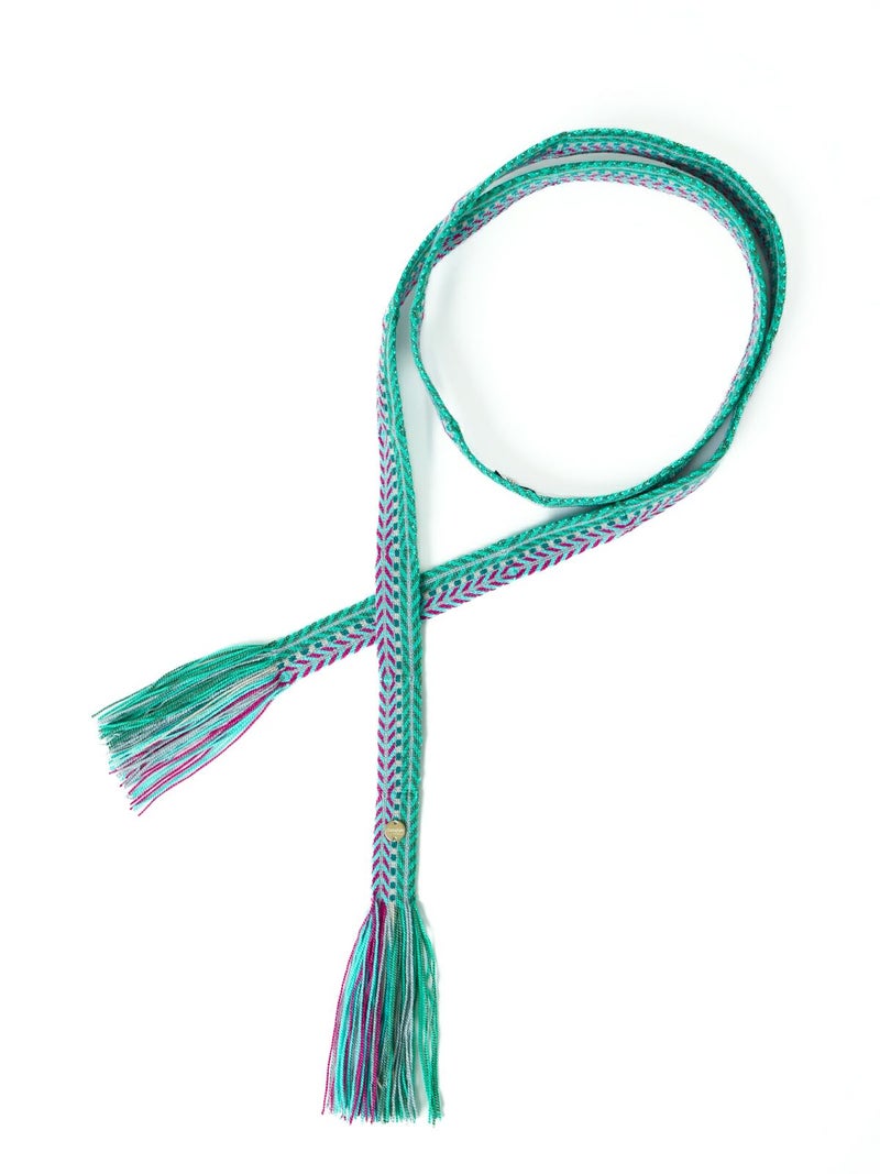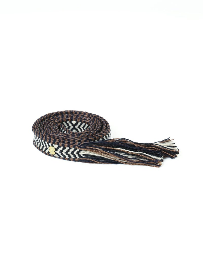 シンプルなスタイリングのワンポイントとしてウエストに巻いたり、長く垂らして裾から覗かせたり、様々な用途でお使いいただけます。ハンドメイドのしっかりとしたつくりが特徴。