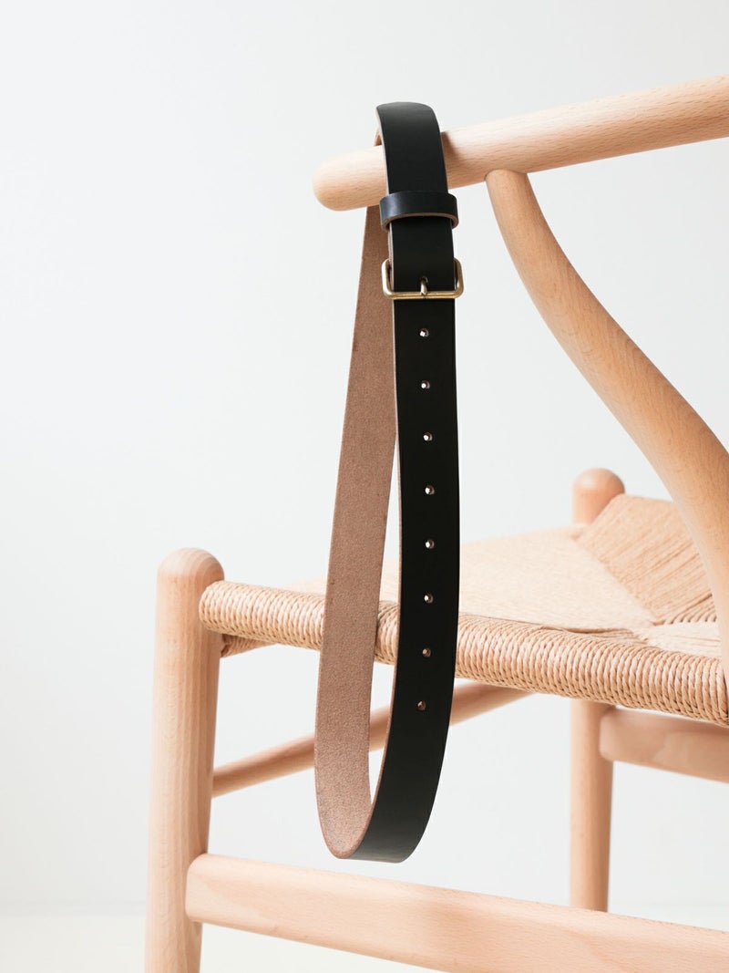 アメリカのホーウェン・レザー(Horween Leather)社が製造する特別なレザー「Chromexcel(クロムエクセル)」を使用した高品質なレザーベルトです。クロムエクセルは革の強度、耐久性、柔軟性、そして美しい光沢を持つことで知られています。厚みのある1枚革を贅沢に使用し、真鍮製のバックルがクラシックな印象を与えます。シンプルでありながら存在感のあるデザインは、カジュアルからビジネスシーンまで幅広く活躍します。経年変化を楽しみながら、長くご愛用いただけるアイテムです。