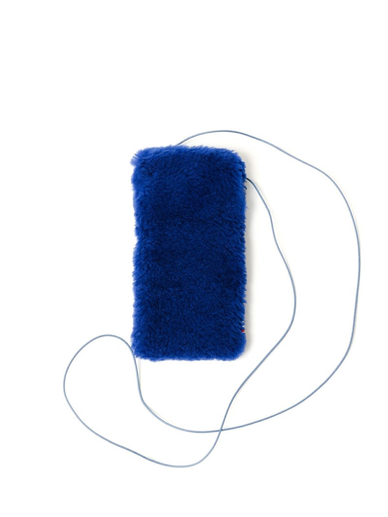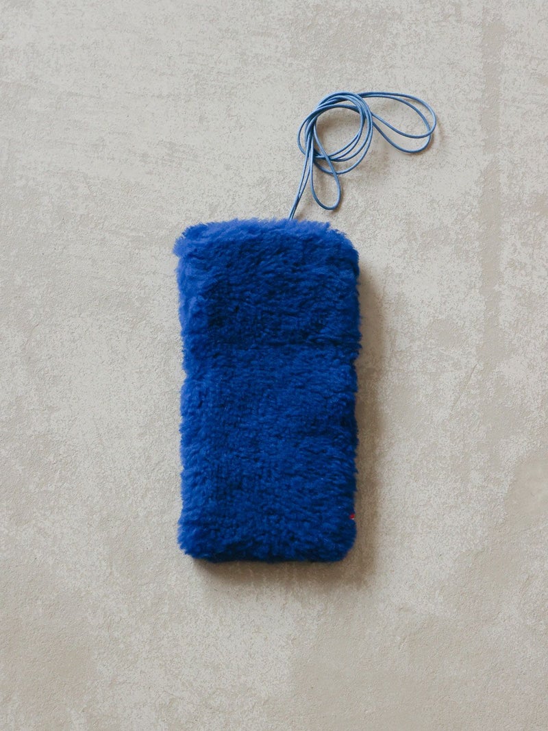リサイクルメリノウールシープスキンを使用したスマートフォンケース。前面にメリノウールを施した軽くて手触りの良い素材で、大切なスマートフォンを優しく保護します。日常使いにちょうど良いサイズ感で、ギフトにもおすすめです。同シリーズもあわせてご覧ください。