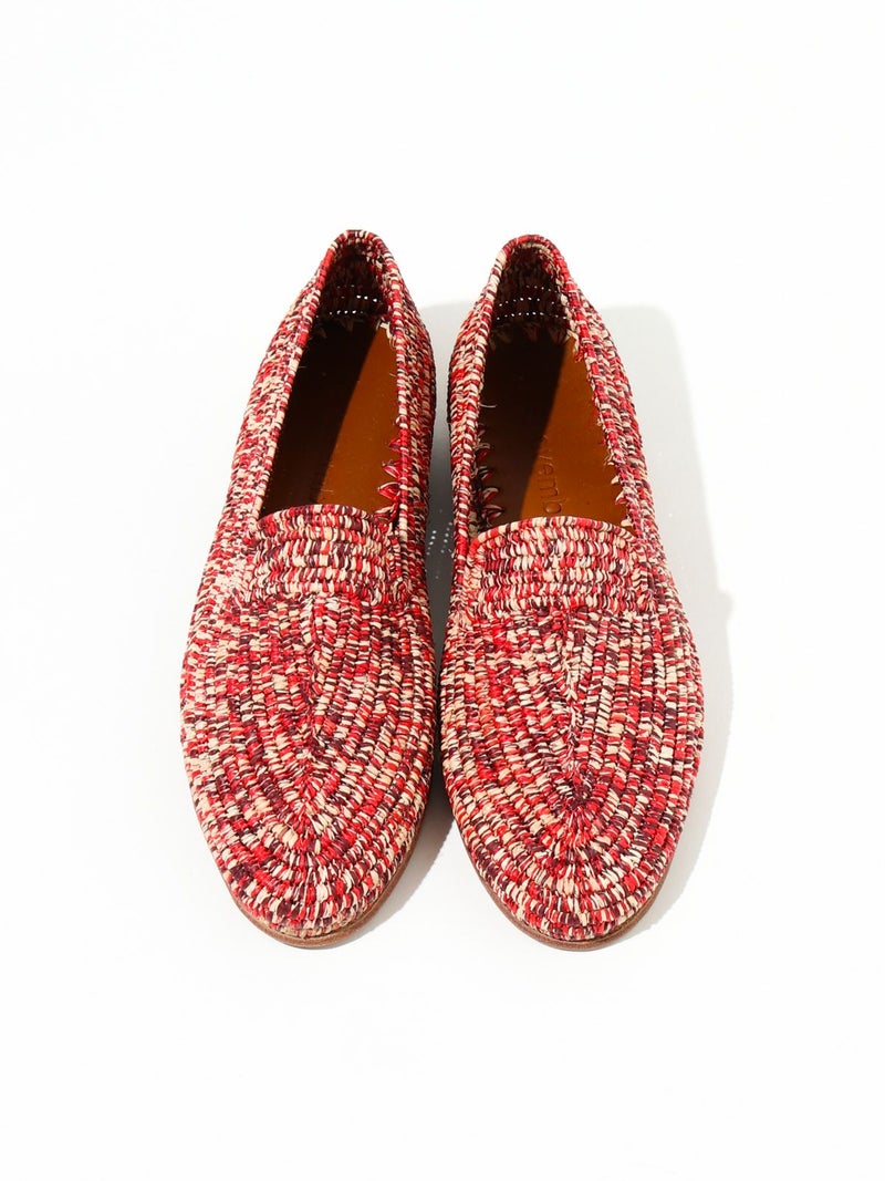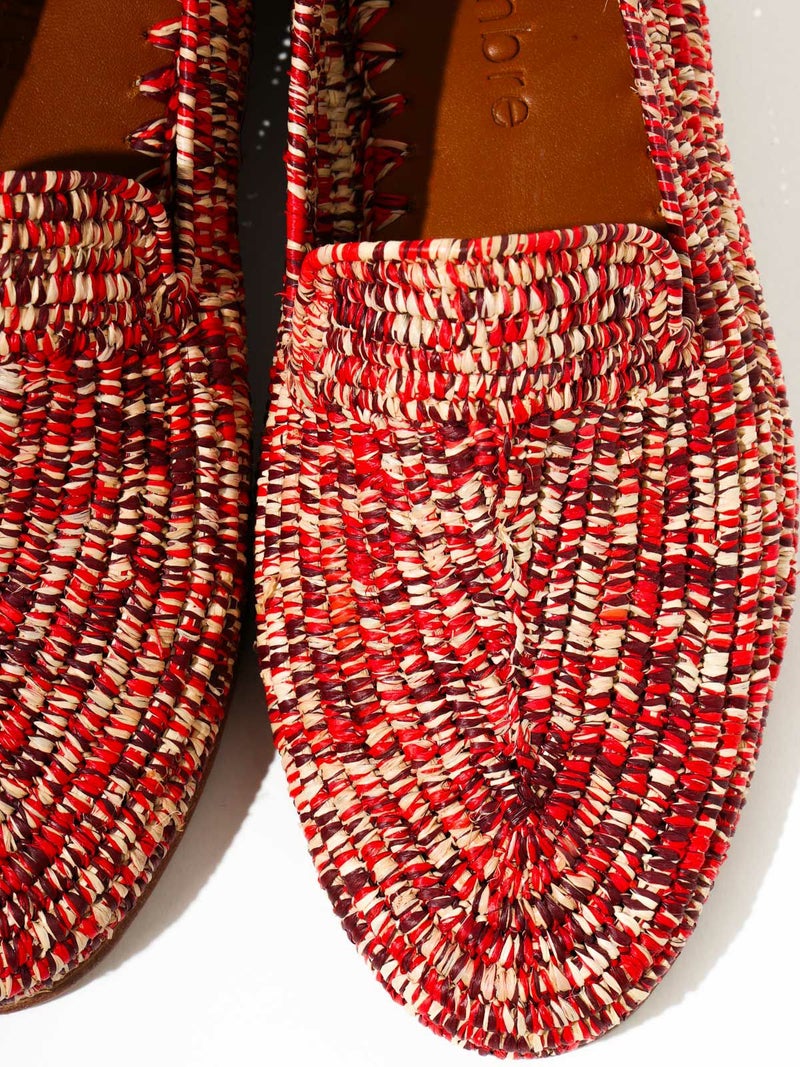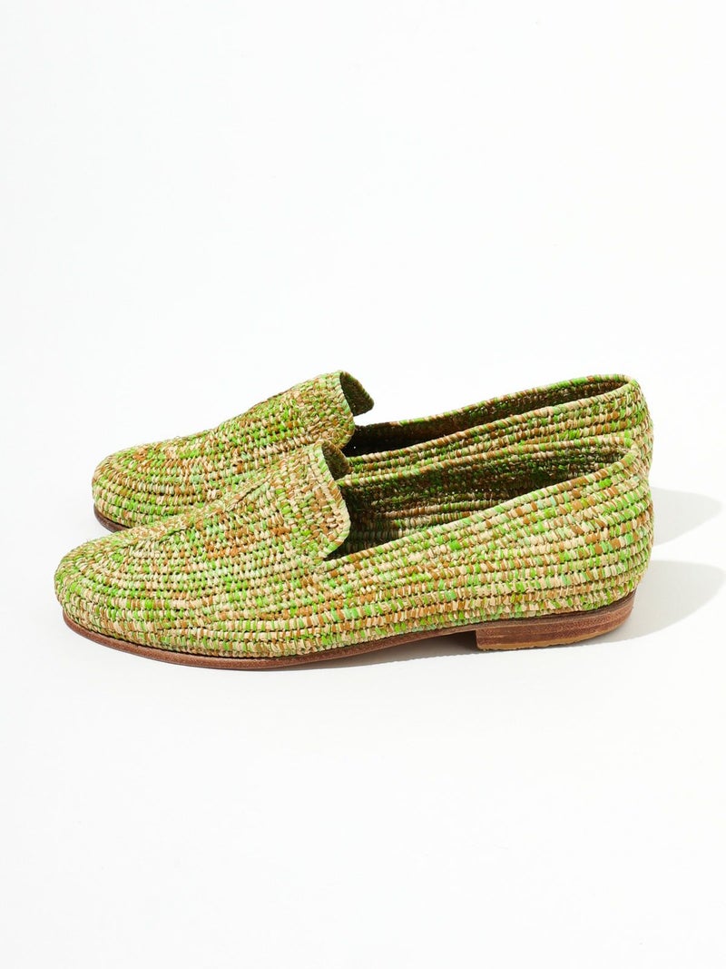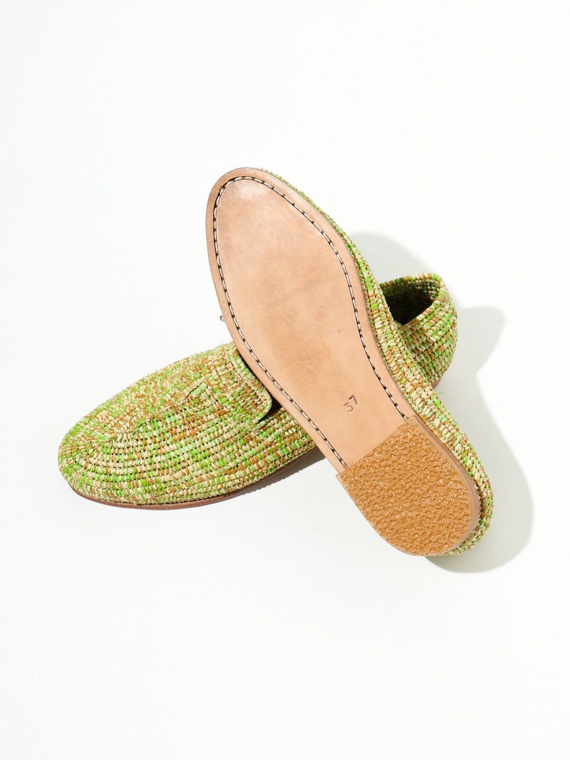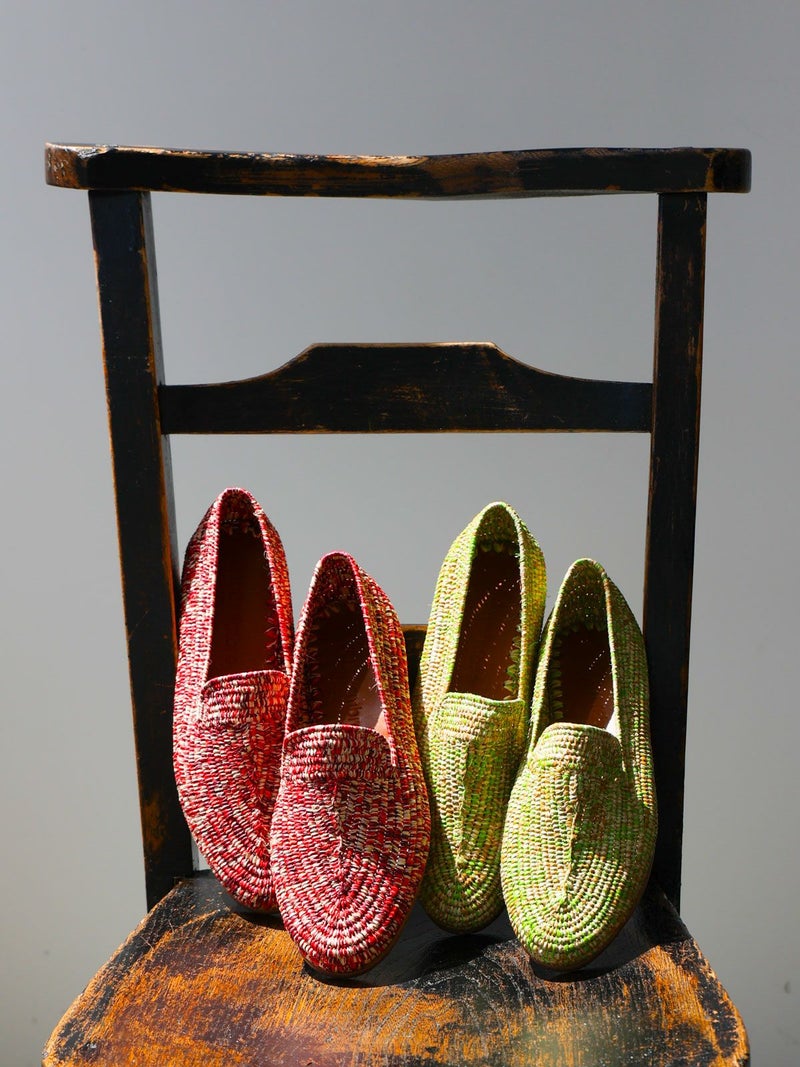 ラフィアを丁寧に編み込んだ、軽やかなモカシンタイプのスリッポンシューズ。モロッコ・エッサウィラの独立した女性たちのコミュニティによって、ひとつひとつ手作業で仕立てられています。繊細な編み目とすっきりとしたフォルムが、装いに華やかさを添えてくれます。クッション性のあるインソールと柔らかなラフィア素材で、快適な履き心地にも配慮。やや甲が浅めのつくりのため、ワンサイズ上の着用がおすすめです。爽やかなグリーンと鮮やかなレッドの2色をご用意しています。