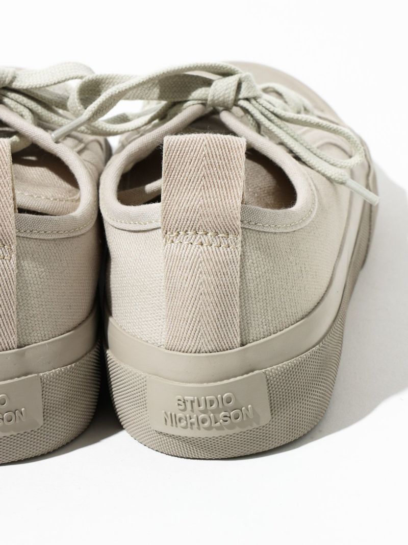 バルカナイズ製法によるナチュラルラバーソールと、ラバー加工を施したコットンキャンバスアッパーを組み合わせた、ローカットのユニセックススニーカーです。シンプルながらも洗練されたデザインが特徴で、日常のスタイリングに上品なアクセントを加えます。ミニマルなデザインと高品質な素材使いで、カジュアルからスマートカジュアルまで幅広いスタイルにマッチします。ユニセックス仕様で、男女問わずご着用いただけます。日常使いはもちろん、長時間の歩行にも適した快適な履き心地を提供します。幅広のデザインで少しゆったりとした履き心地です。通常23.5cm → SIZE37 少しゆとりがあり楽な履き心地です。少し踵が浮きますがストラップで調整して問題なく着用できました。
