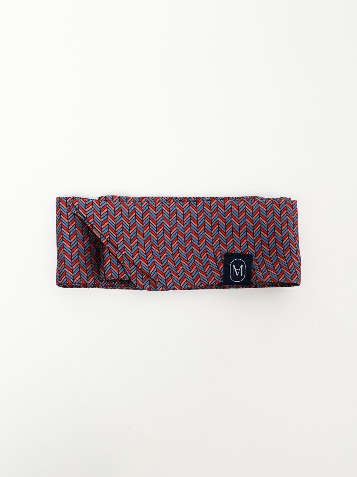 高級感のあるシルク100%ネクタイ風スカーフ。レトロで華やかな柄落ち着いたカラーの幾何学模様がポイント。アクセサリー感覚でコーディネートにプラスして華やかなスタイリングをお愉しみください。