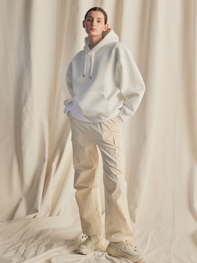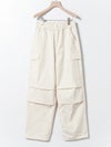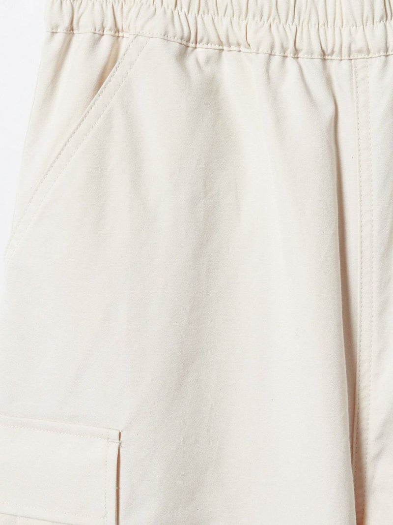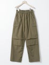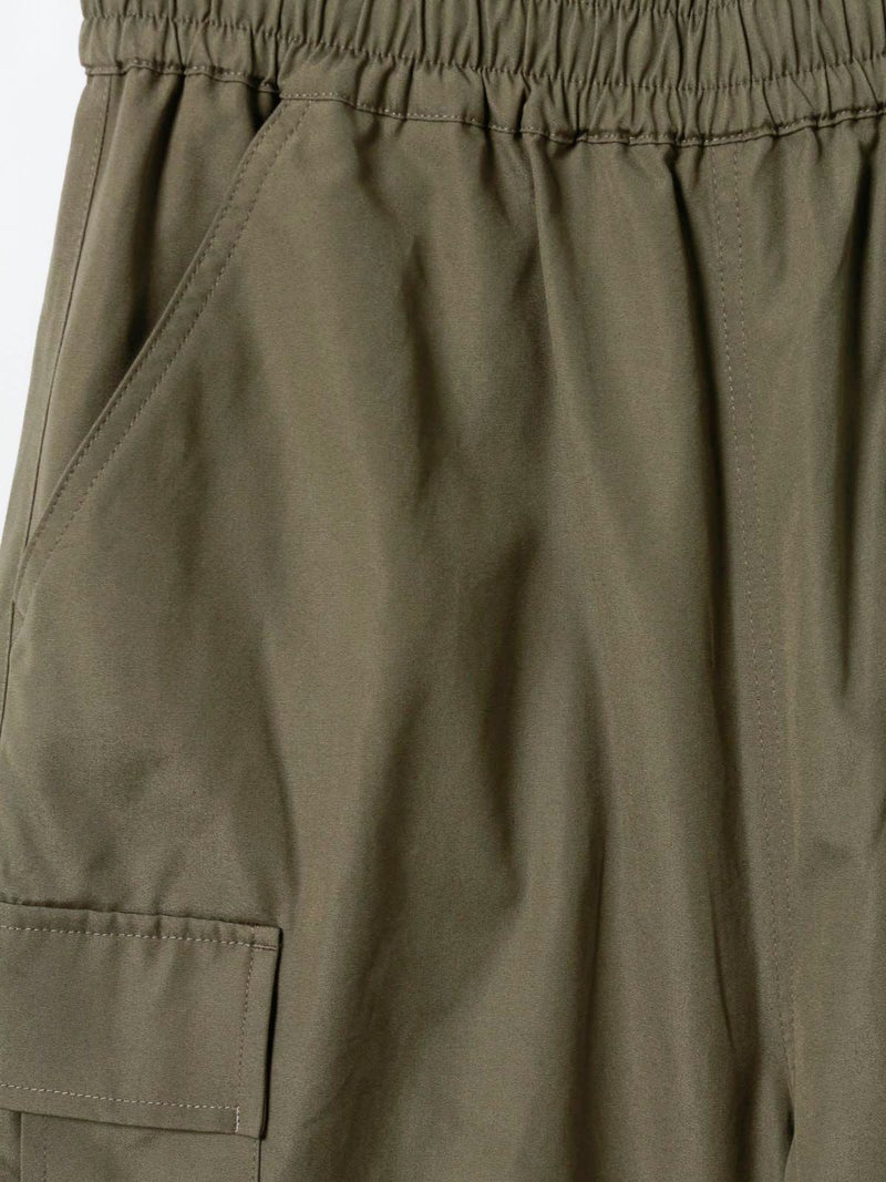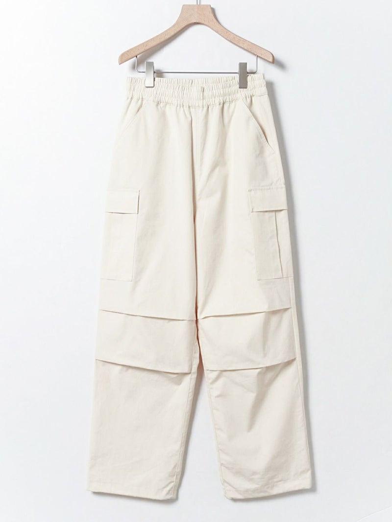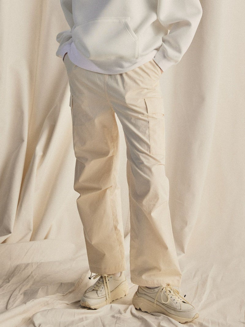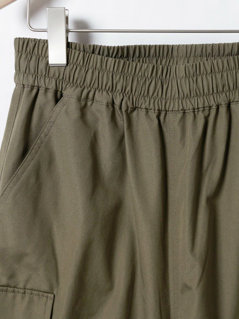 M65をベースに、カジュアルでリラックス出来るようイージー仕様に落とし込みデザインされたカーゴパンツ。綺麗なトップスに対してのハズしのパンツになってくれたら嬉しいアイテムです。裾はドローコードで絞ることも可能なため、敢えて長めの着丈に設定。ウエストは平ゴム+紐で調整可。ポケットに手が入れやすいよう腰もとのポケットはフラップ無しに。※キナリのみ裏地付き