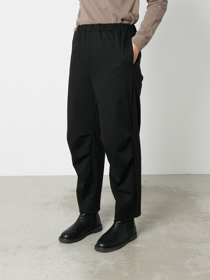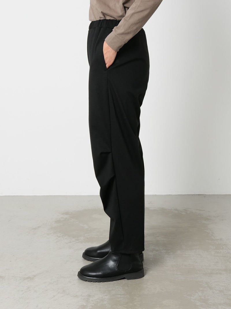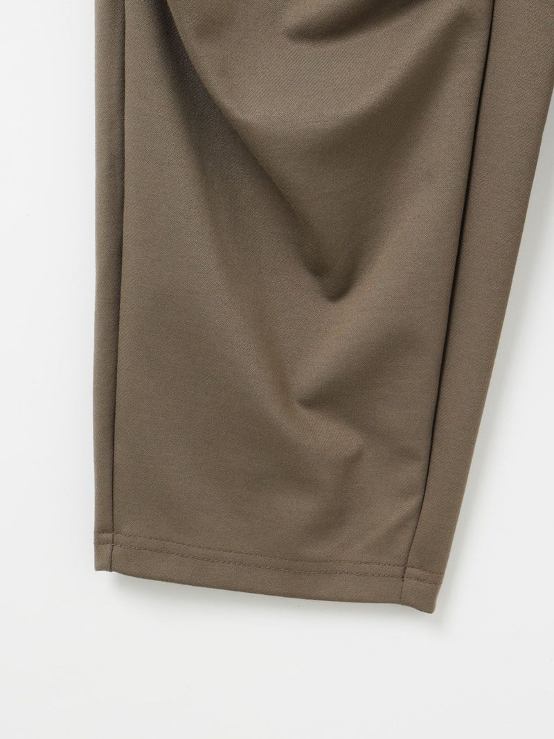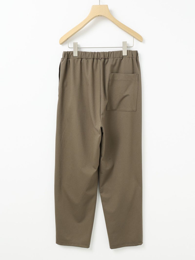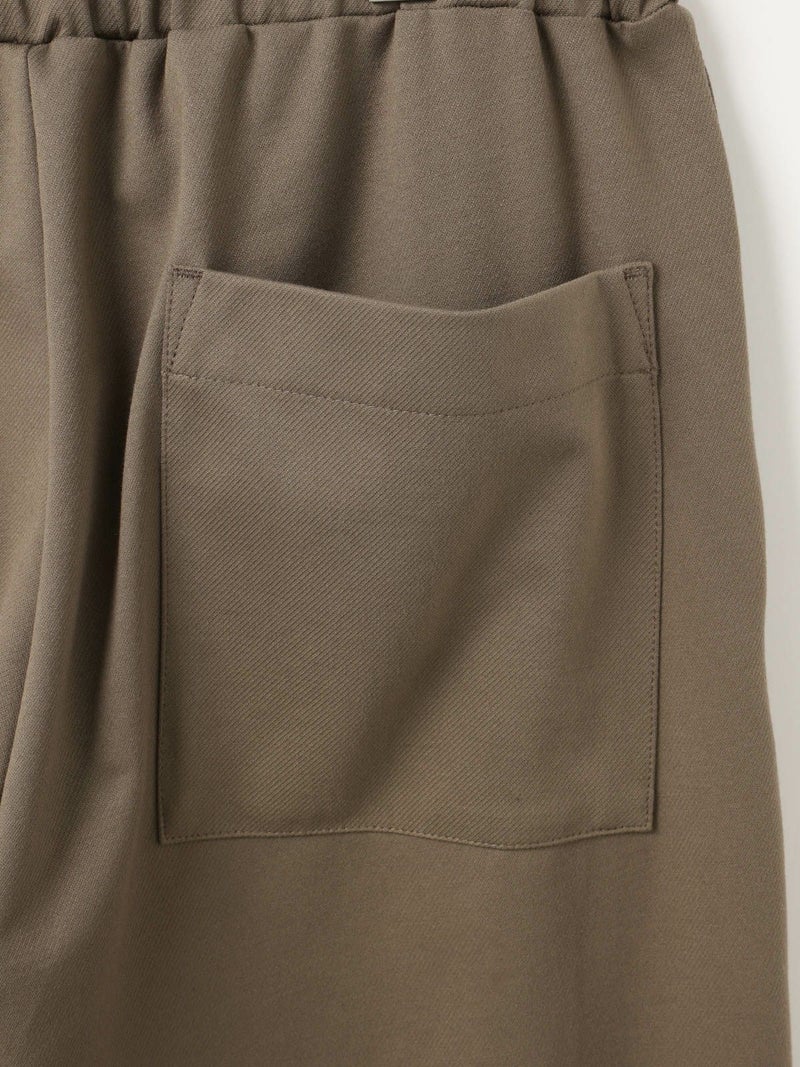 カーゴパンツをベースにした、リラックスイージーなジャージイージーワークパンツです。膝のタックディティール以外カーゴパンツの要素を極力そぎ落としてシンプルに仕上げました。ワークパンツには珍しいキレイ見えのカットソー素材で着心地抜群のアイテム。ハイゲージの編みによって表現されたツイル調の柄が特徴の布帛ライクなポンチ素材を使用。高いストレッチ性がありながら、しっかりとしたハリ感ときれいな落ち感で型崩れしにくいイージーケア素材がポイント。(3-810011/ショートジャケットと同素材)。