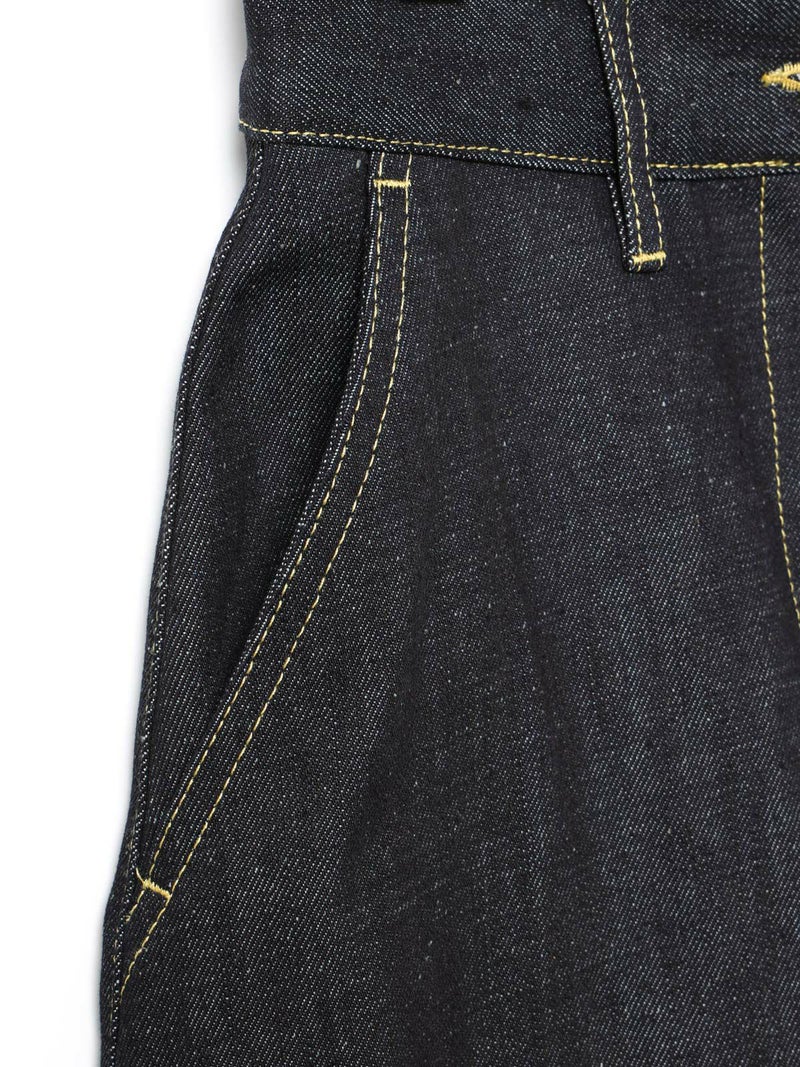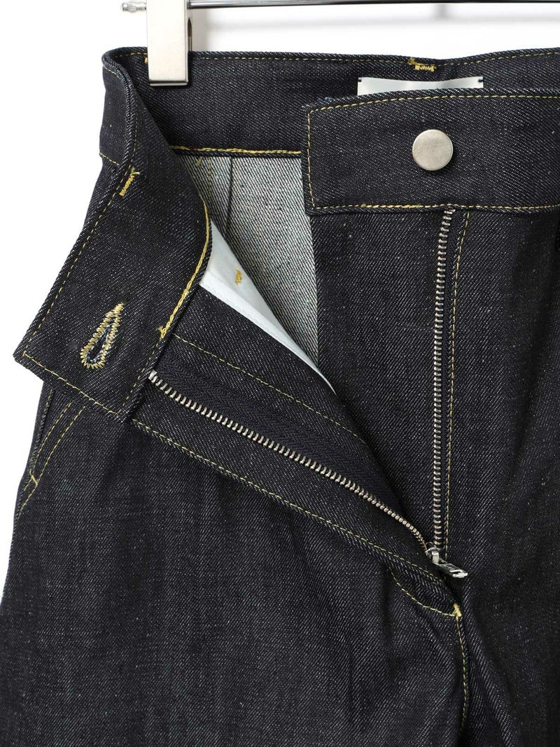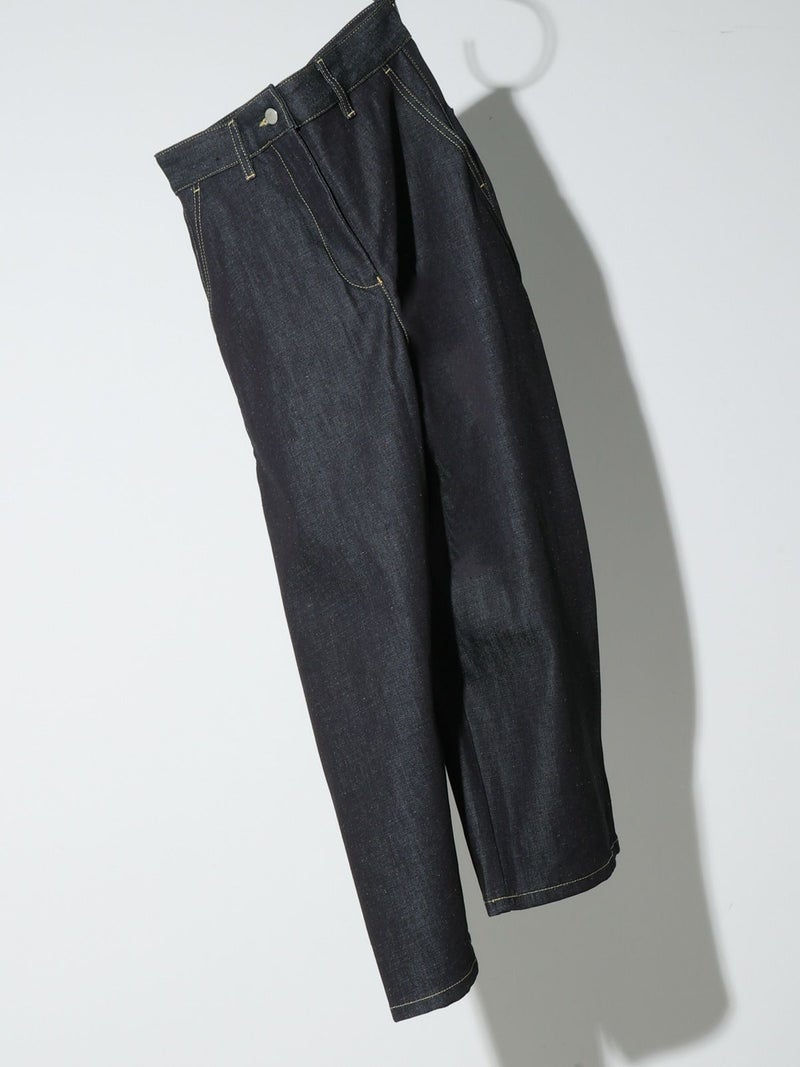 スタジオニコルソンらしいワイドシルエットが印象的なワイドクロップドデニムパンツ。ウエスト位置は高く設計、ワタリにしっかりとボリュームをもたせ、めりはりのあるシルエットが洗練された端正な大人のスタイリングを実現。ウエスト周りがすっきりとしたデザインなのでラフすぎず上品な印象に。存在感のある大きなバックポケットと牛革のタグがさりげないアクセントにも。