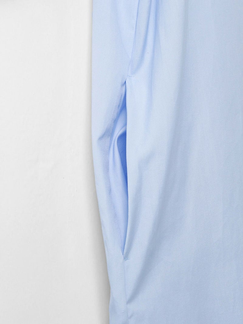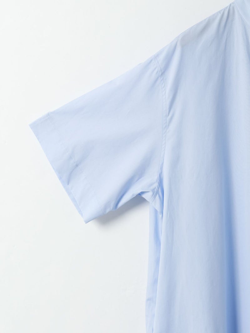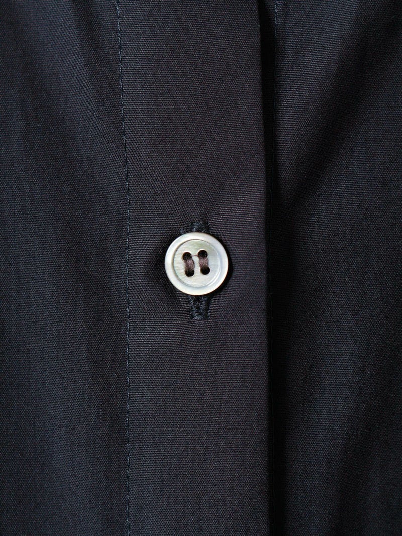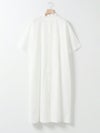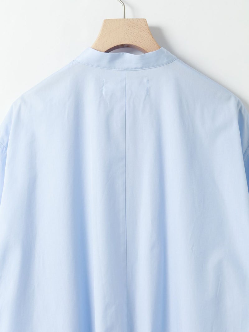 ワイドなサイズ感でリラックス感がありながらも縦ラインを強調するストレートシルエットとマキシ丈に拘った、すっきり見えするスタンドカラーワンピースです。ディテールはシンプルに仕上げ、シルエットをポイントに。ポケット付。ケバ感を抑えたクリアな表面感とナチュラルな光沢感のある上品な綿100%の100/2ブロードを使用したシンプルな1枚です。