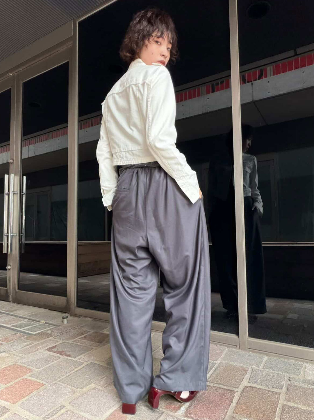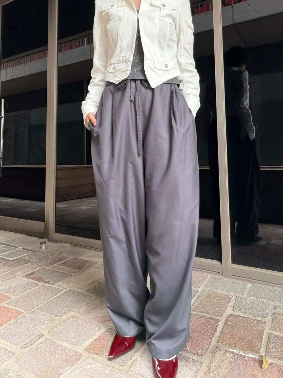 サラッとした質感の素材で、着ていて心地のいいパンツ。形も綺麗でウエストも絞れるためコーデの幅を広げてくれるアイテム。