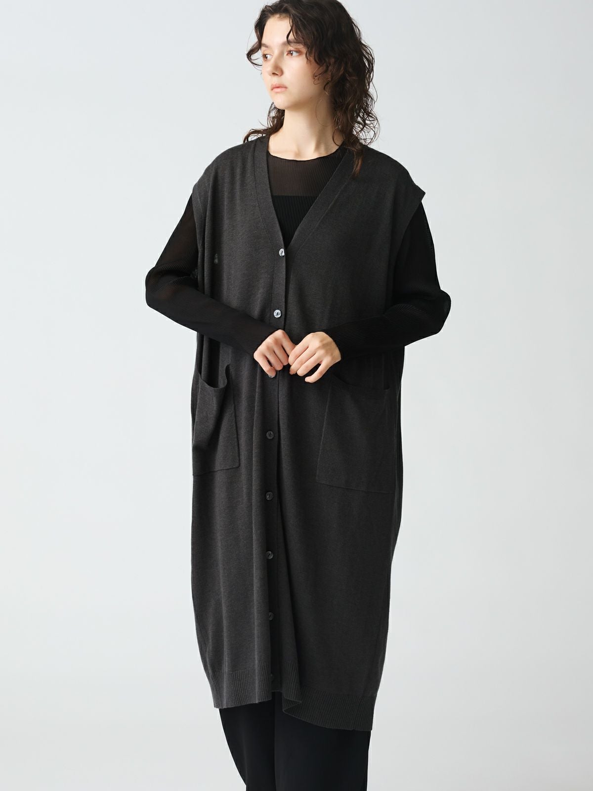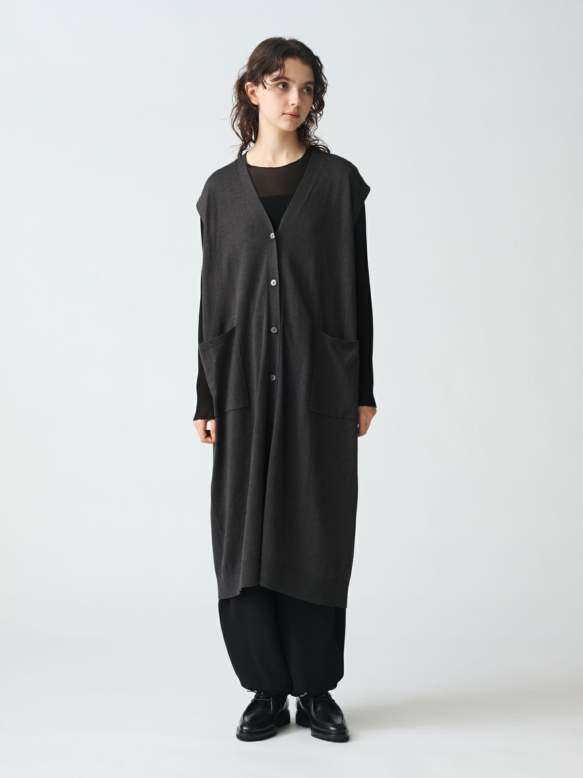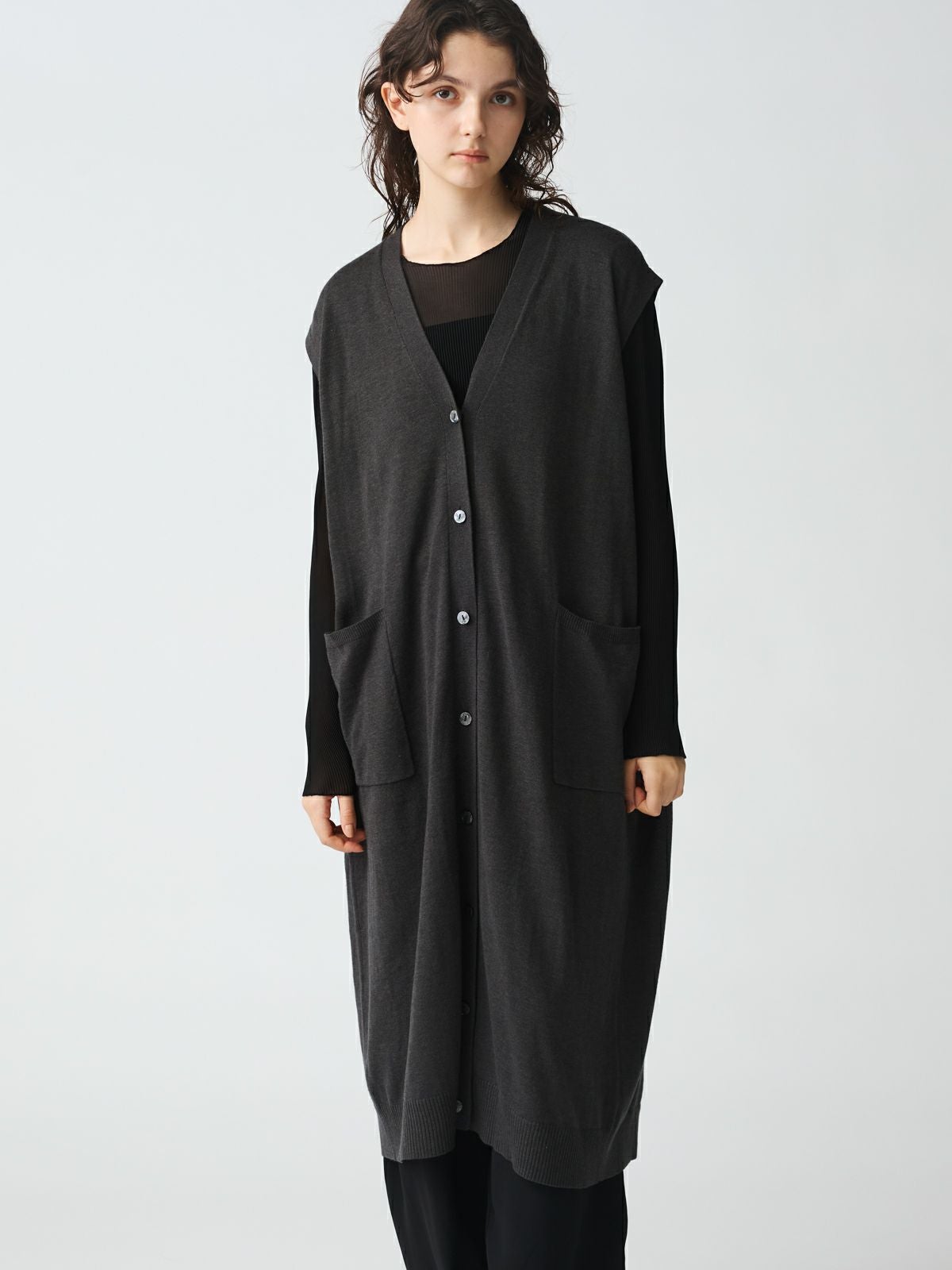 他の画像を見る お気に入りに登録する mizuiro ind mizuiro ind Vネックロングベスト original price ¥ 19,800 price ¥ 11,880 税込 販売期間 2026/02/17 20:00 〜