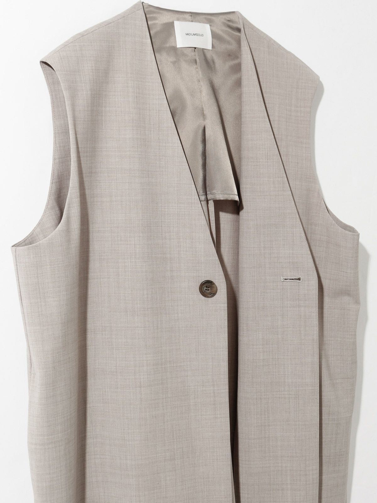 他の画像を見る お気に入りに登録する MIDIUMISOLID MIDIUMISOLID ノーカラーワイドロングベスト(3-1693) original price ¥ 16,500 price ¥ 14,850 税込 販売期間 2026/01/01 0:00 〜 ARCHIVES