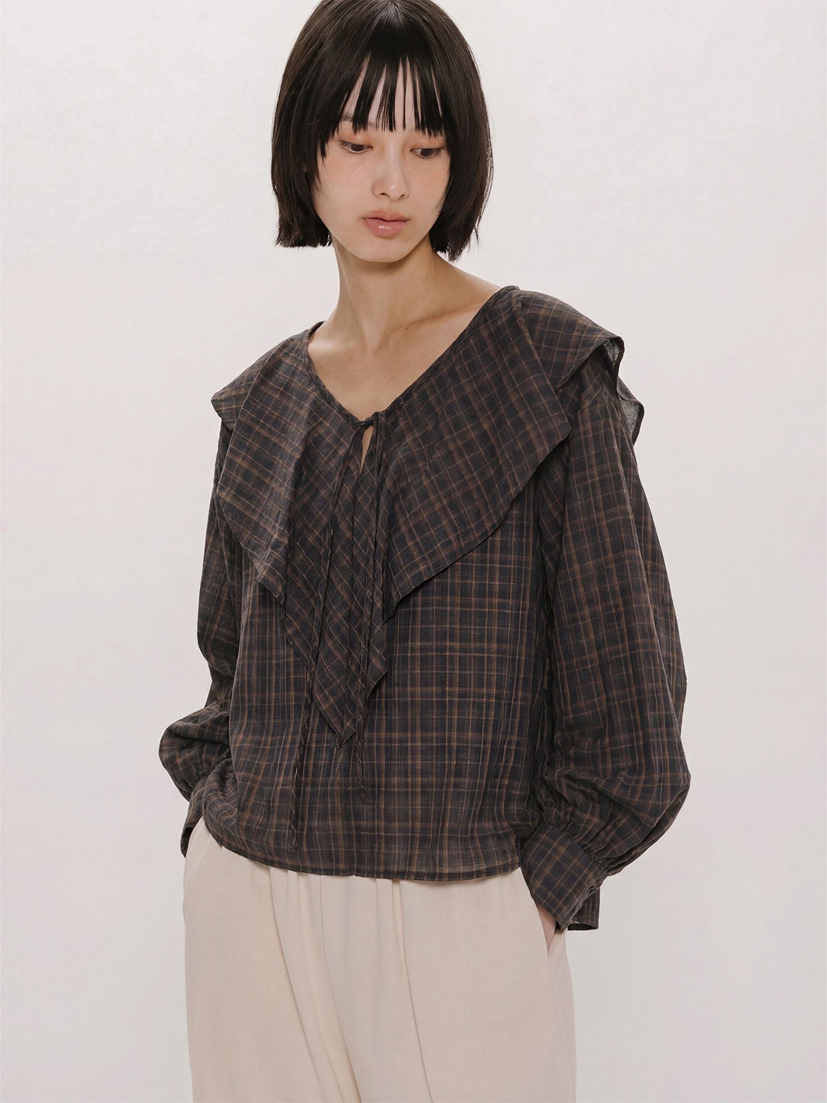 他の画像を見る お気に入りに登録する MIDIUMISOLID for Ladies MIDIUMISOLID for Ladies チェックビッグフリルカラーブラウス price ¥ 18,480 税込 販売期間 2026/03/16 20:00 〜 NEW 26SS