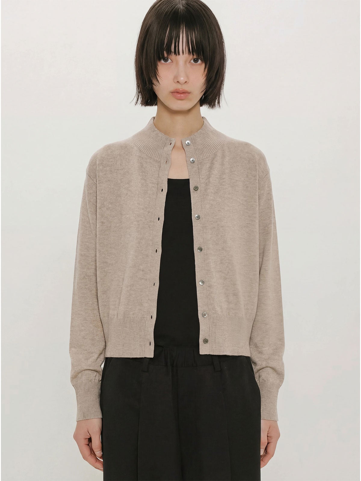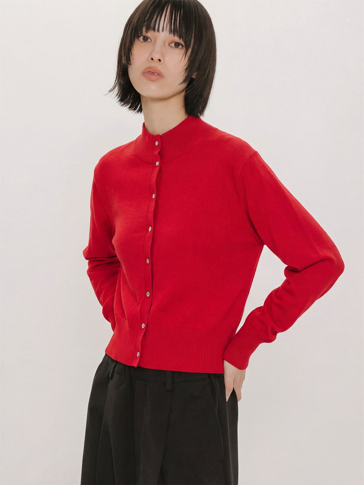 他の画像を見る お気に入りに登録する MIDIUMISOLID for Ladies MIDIUMISOLID for Ladies ハイネックショートカーディガン price ¥ 13,200 税込 販売期間 2026/02/09 20:00 〜 NEW 26SS