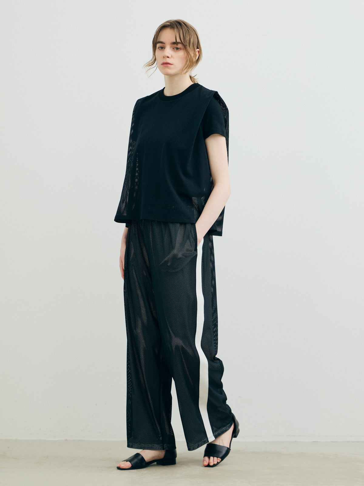 他の画像を見る お気に入りに登録する MARMARMAR MARMARMAR メッシュノースリーブTシャツ price ¥ 7,480 税込 販売期間 2026/03/31 20:00 〜 NEW 26SS