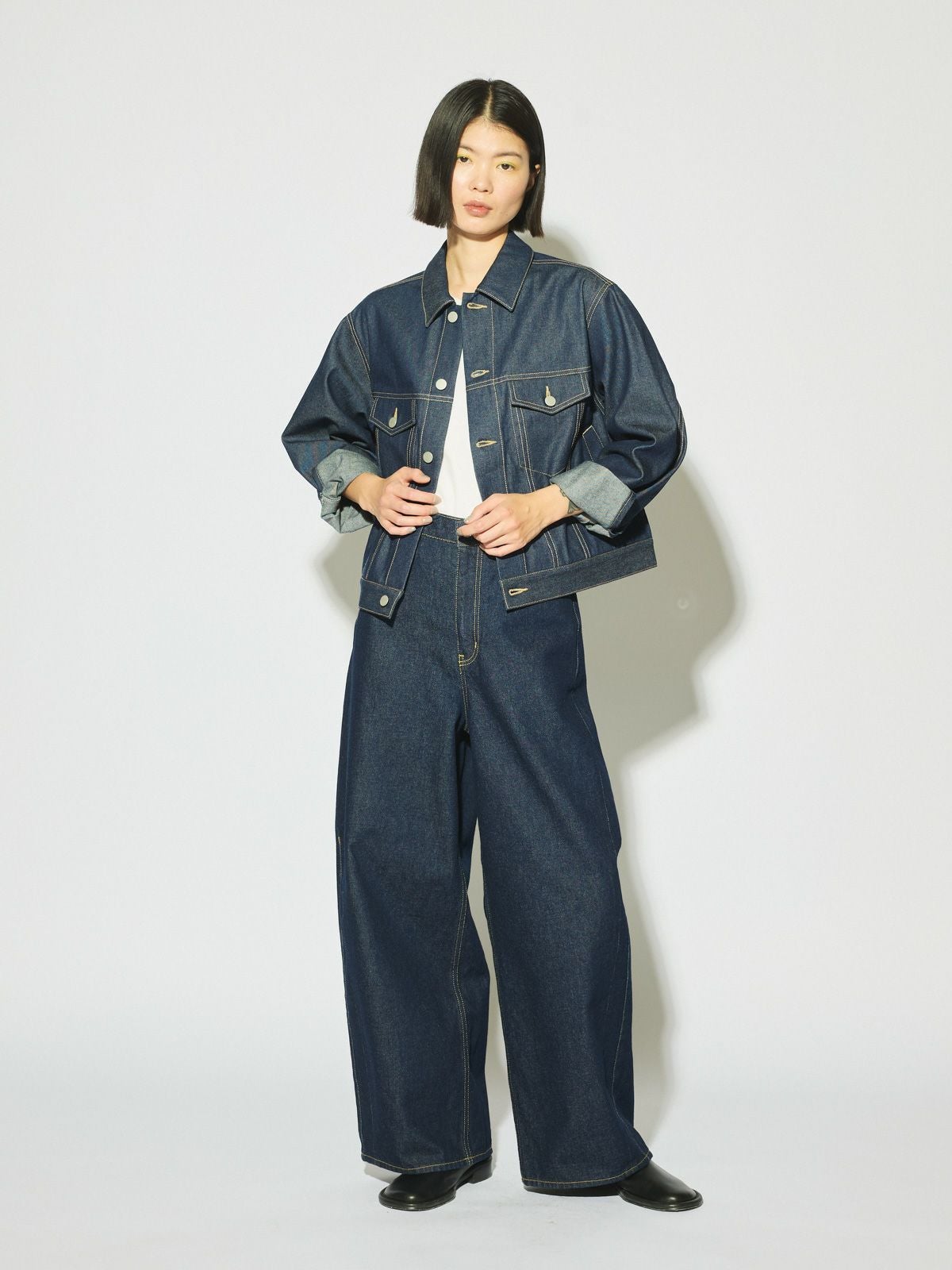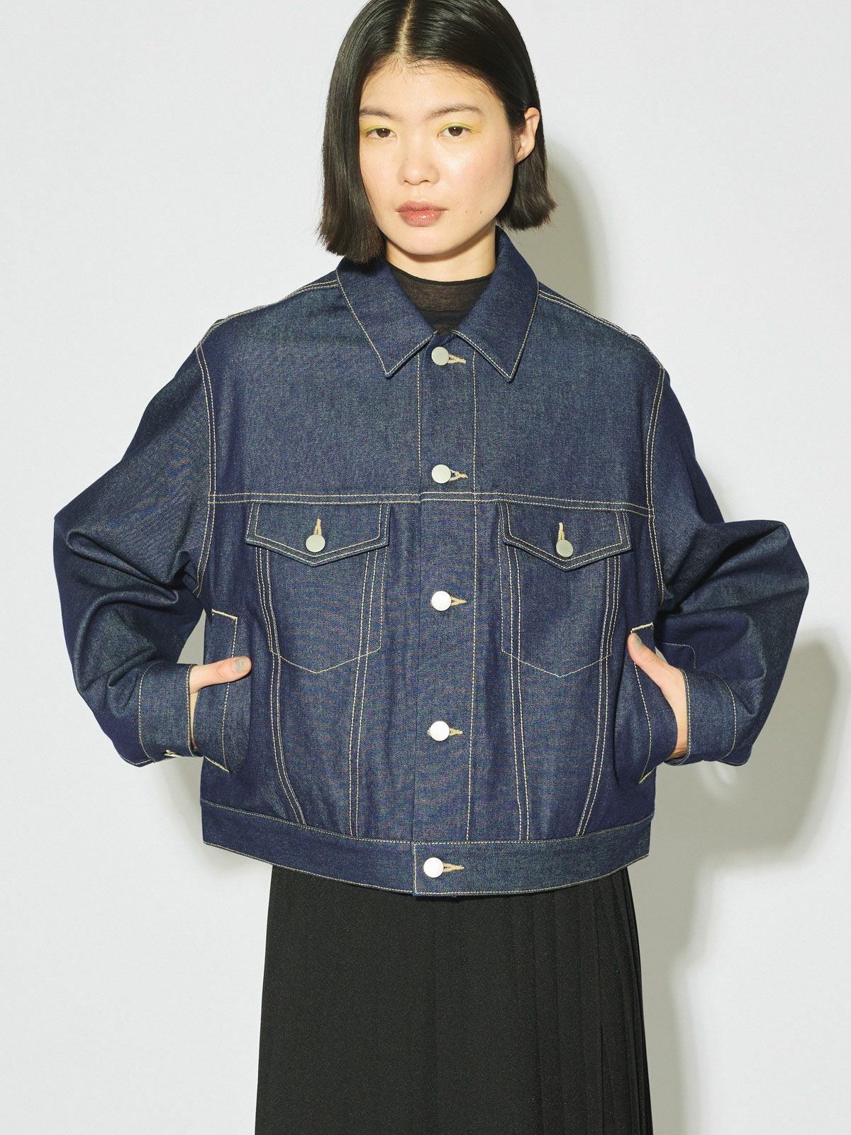 他の画像を見る お気に入りに登録する MIDIUMISOLID for Ladies MIDIUMISOLID for Ladies ショートデニムジャケット[A] price ¥ 28,600 税込 販売期間 2026/03/03 20:00 〜