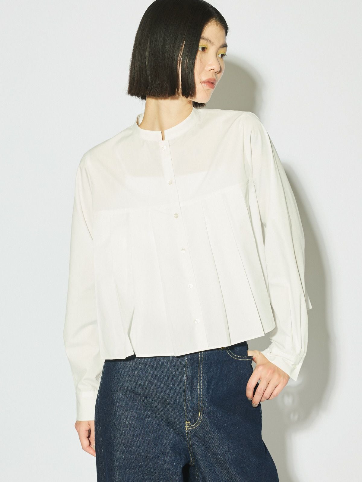 他の画像を見る お気に入りに登録する MIDIUMISOLID for Ladies MIDIUMISOLID for Ladies スタンドカラープリーツシャツ[A] price ¥ 17,600 税込 販売期間 2026/03/03 20:00 〜