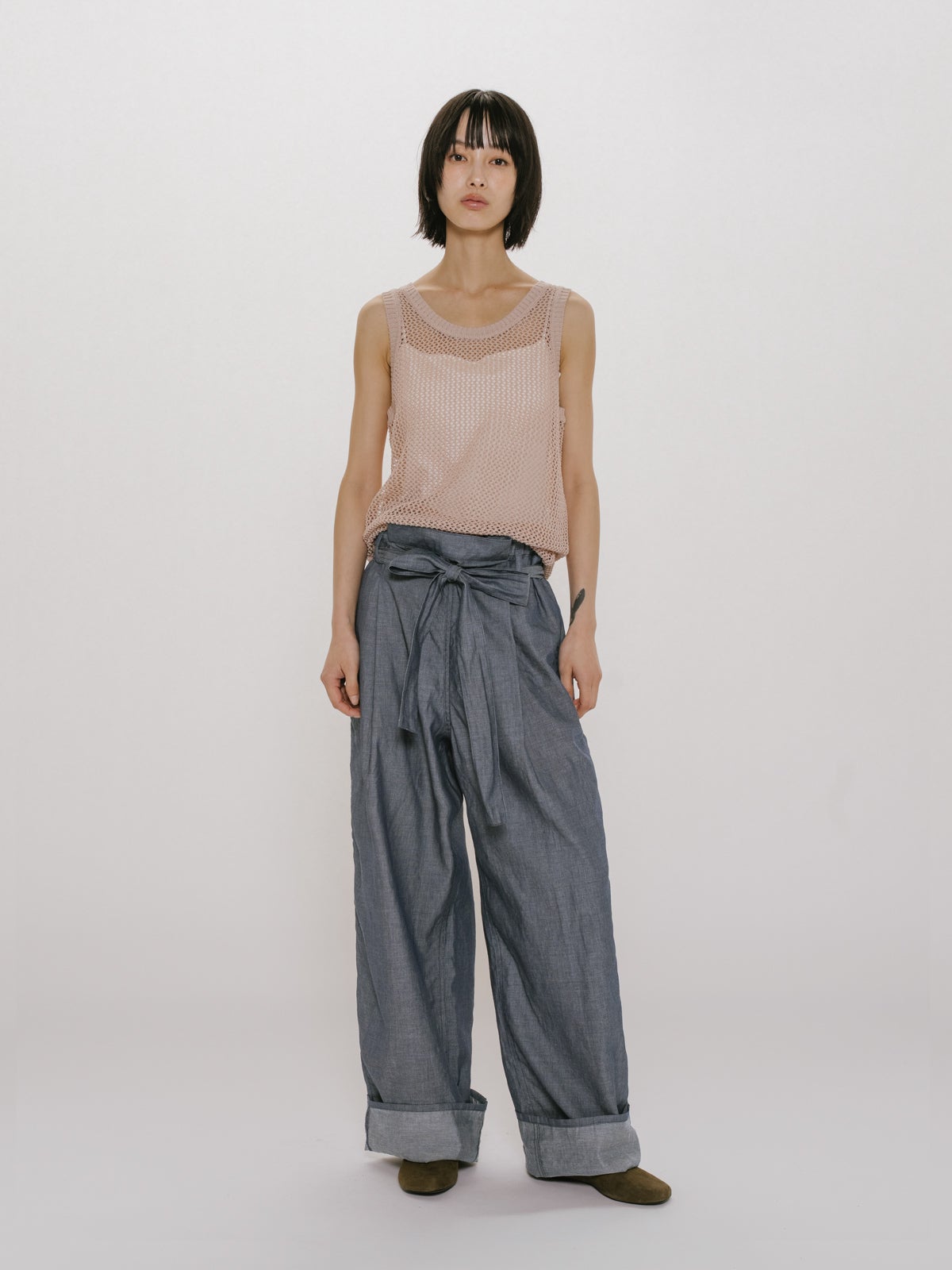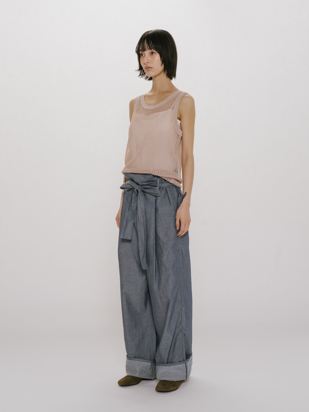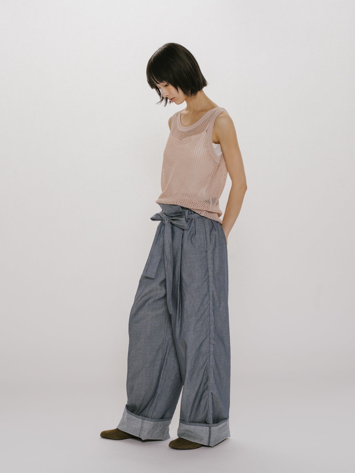 他の画像を見る お気に入りに登録する MIDIUMISOLID MIDIUMISOLID for Ladies シアーデニムイージーパンツ price ¥ 19,800 税込 販売期間 2026/04/22 20:00 〜 NEW 26SS