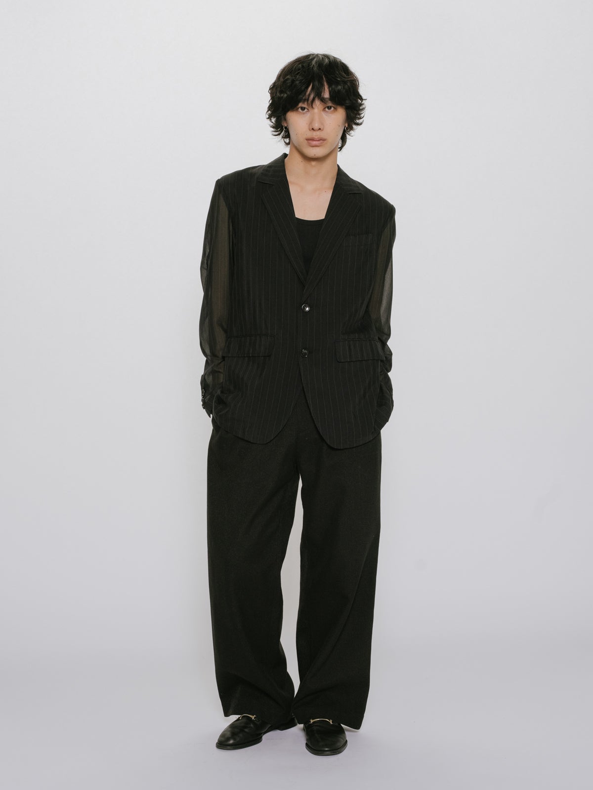 他の画像を見る お気に入りに登録する MIDIUMISOLID MIDIUMISOLID Men’s シアーストライプジャケット price ¥ 41,800 税込 販売期間 2026/04/22 20:00 〜 NEW 26SS