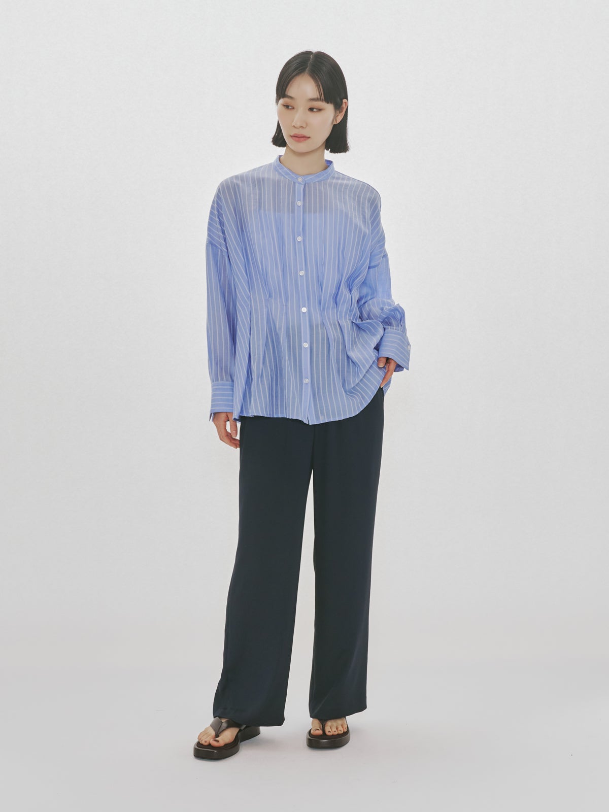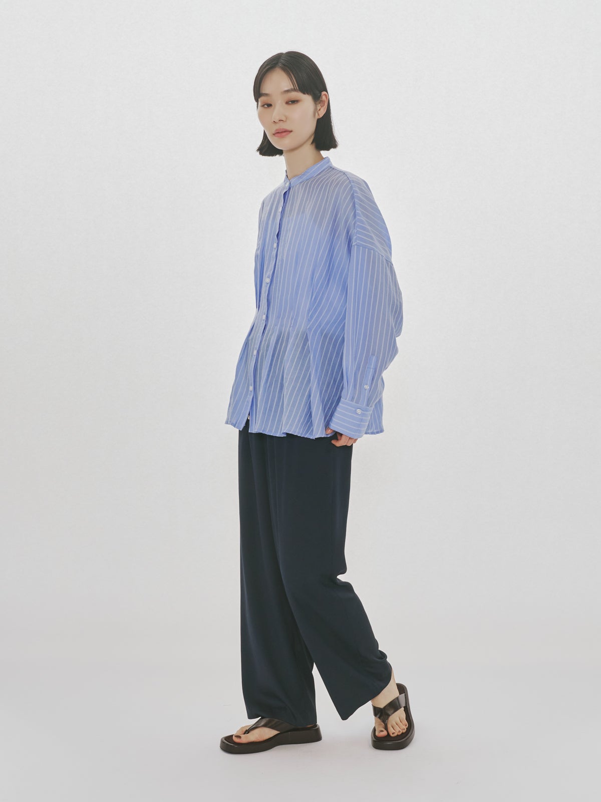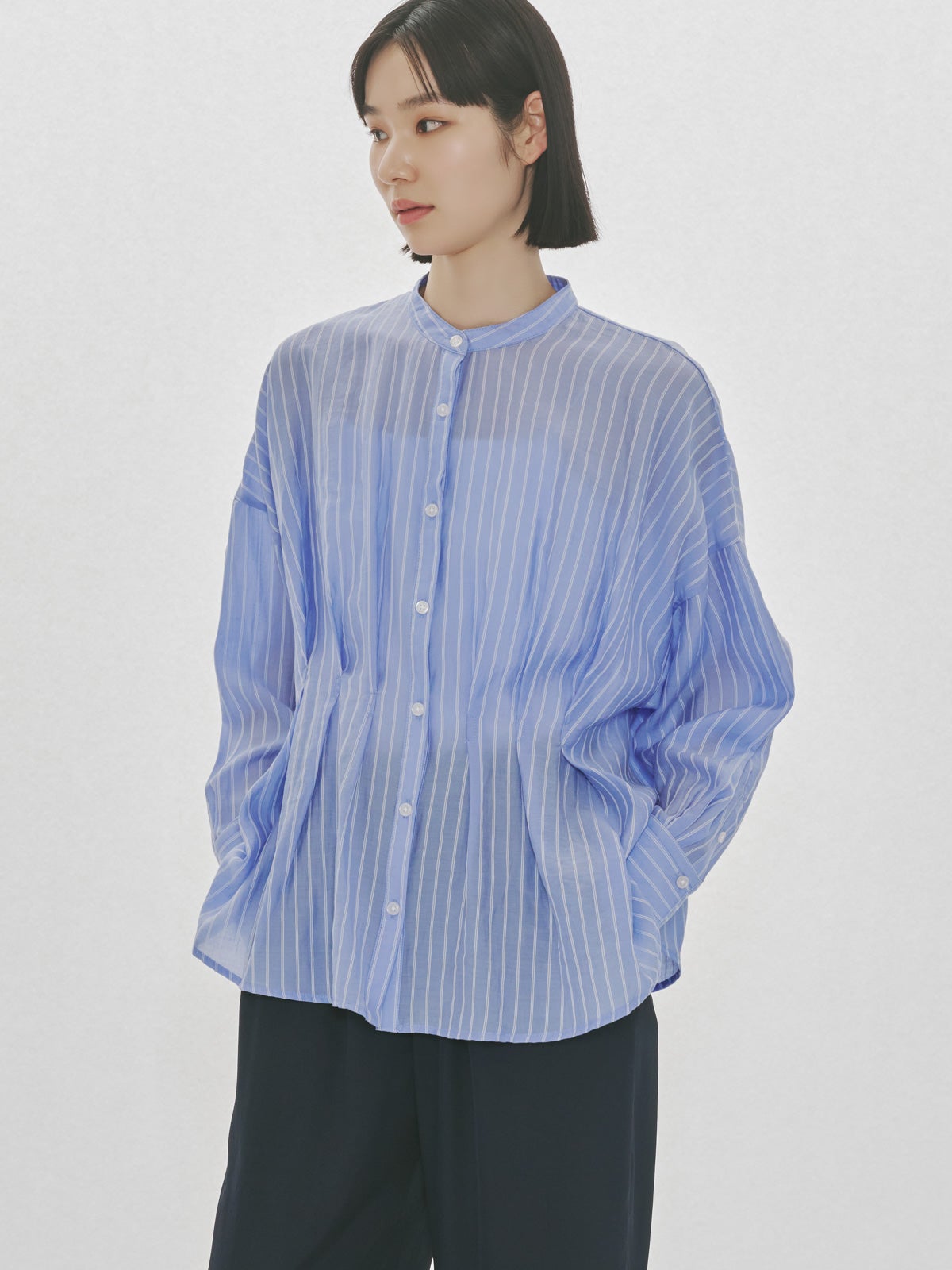 他の画像を見る お気に入りに登録する MIDIUMISOLID MIDIUMISOLID Men’s シアーストライプシャツ price ¥ 27,500 税込 販売期間 2026/04/22 20:00 〜 NEW 26SS