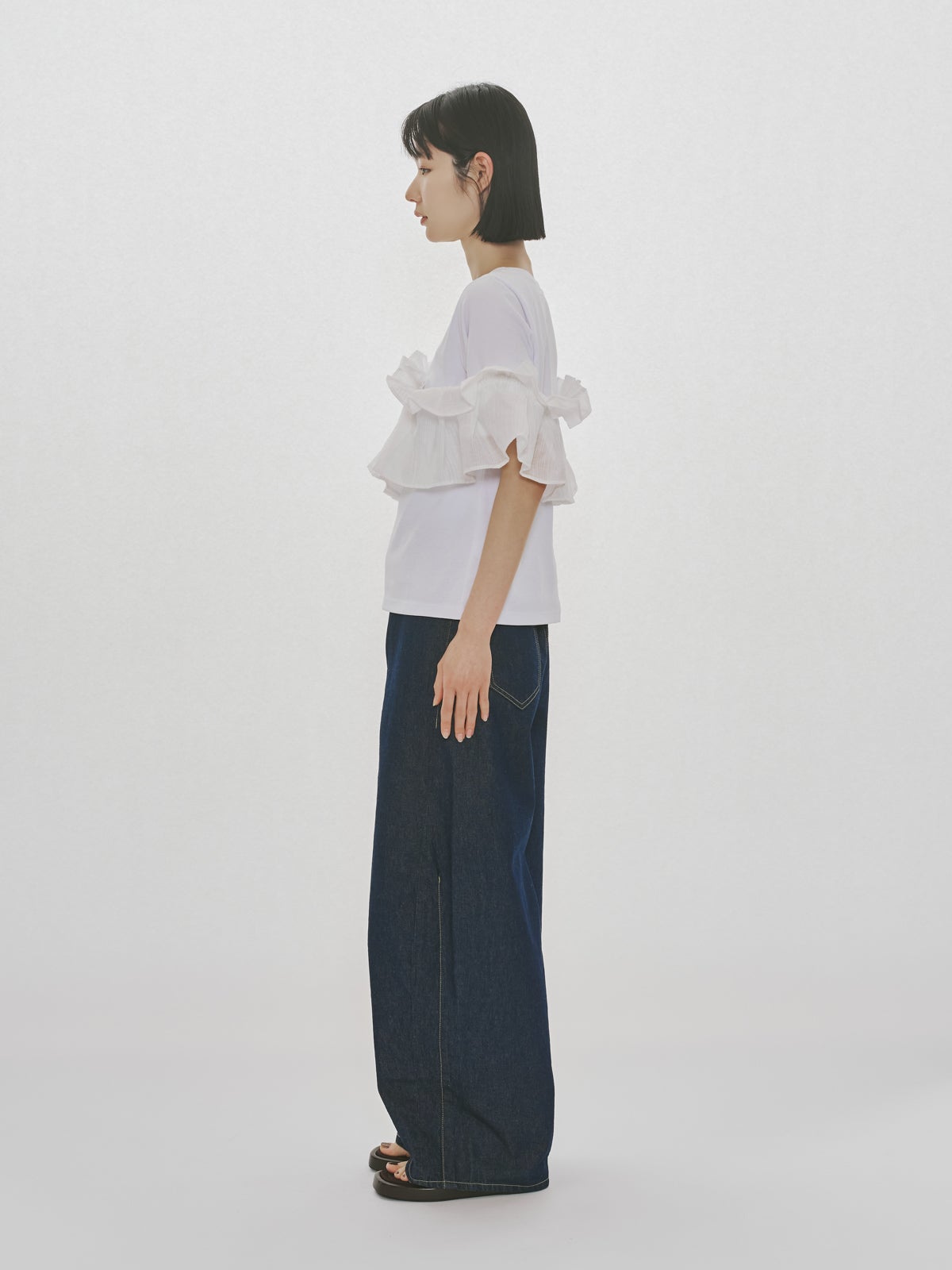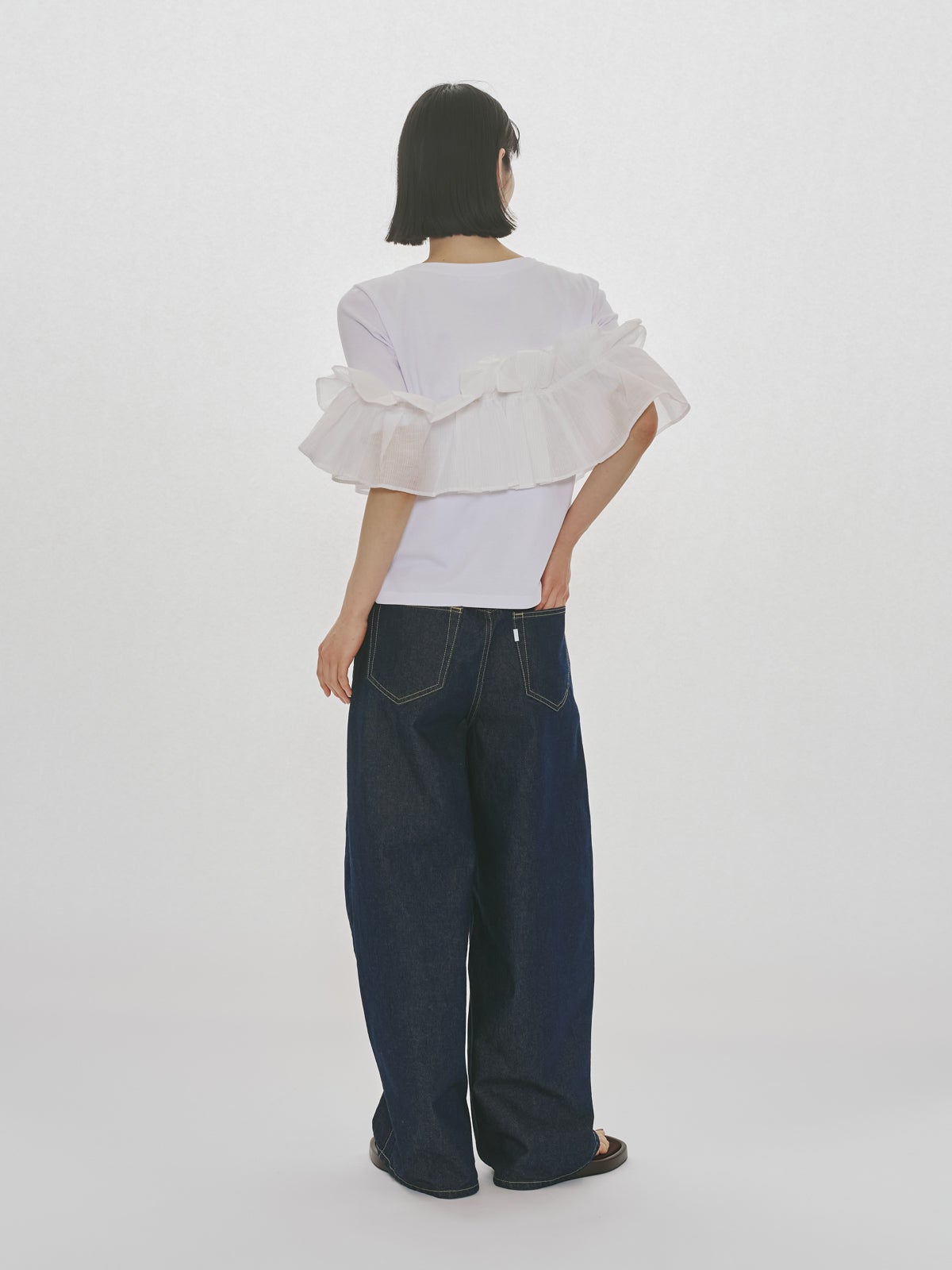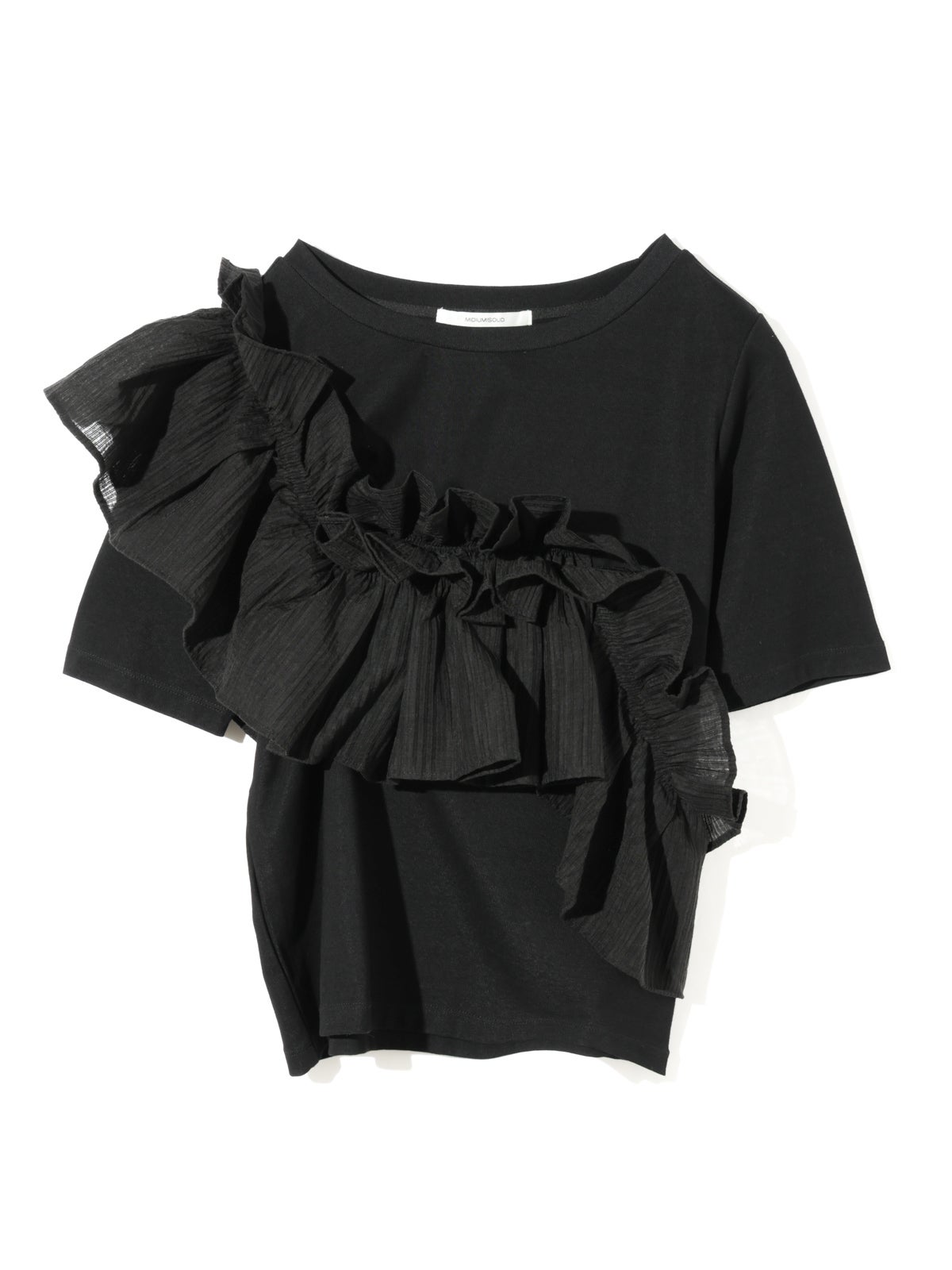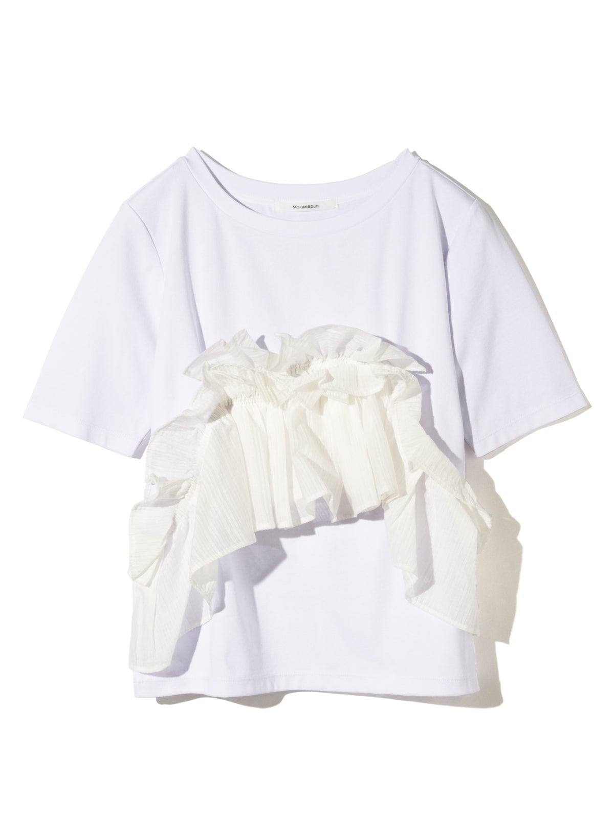 他の画像を見る お気に入りに登録する MIDIUMISOLID for Ladies MIDIUMISOLID for Ladies シフトフリルTシャツ price ¥ 14,300 税込 販売期間 2026/04/23 20:00 〜 NEW 26SS