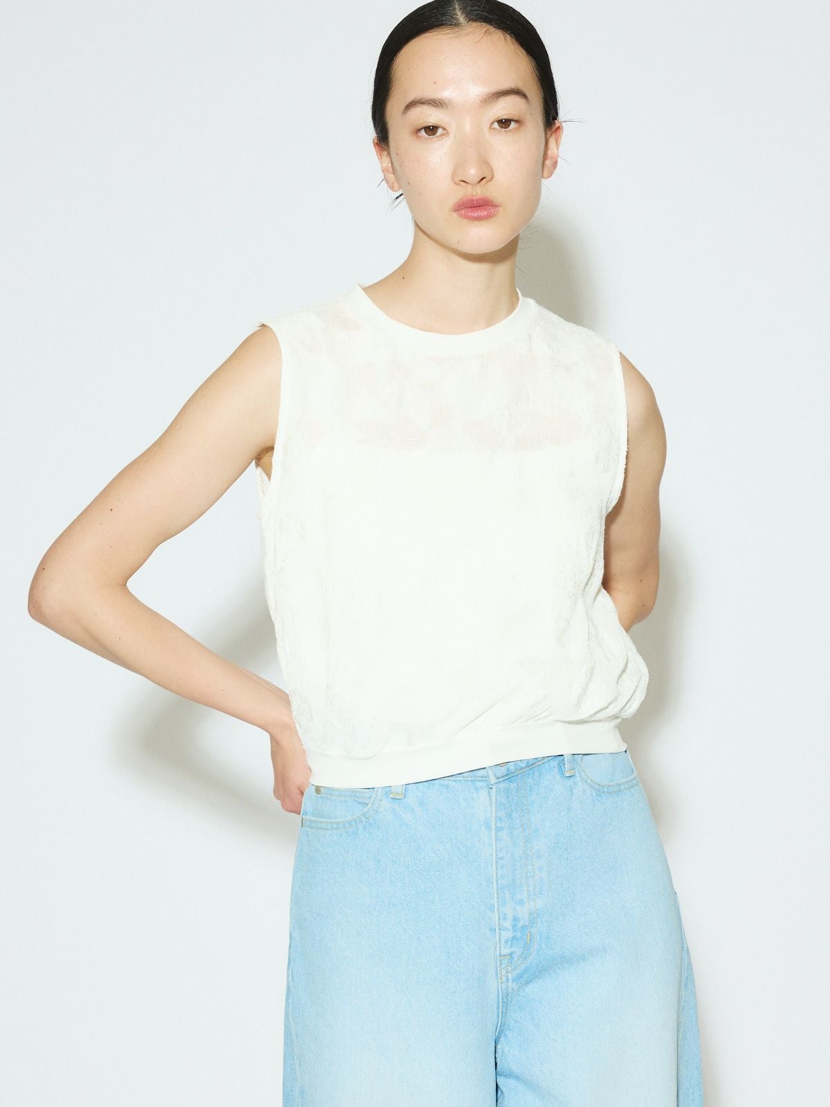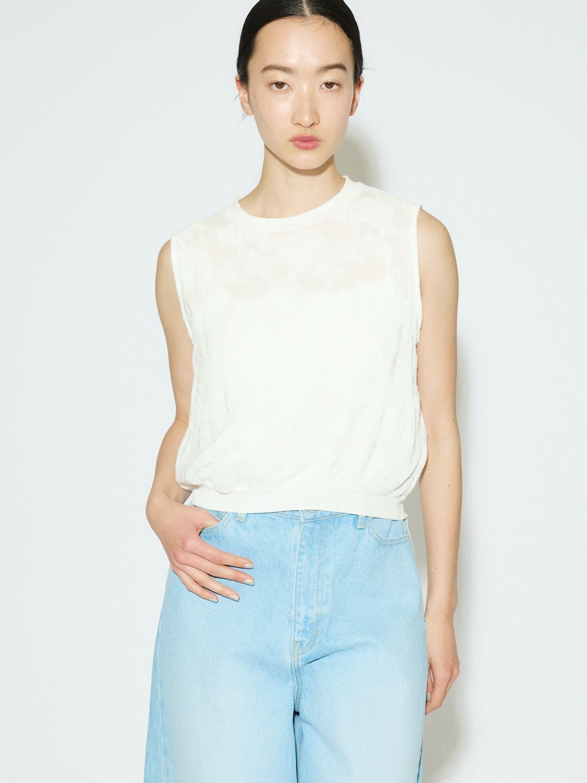 他の画像を見る お気に入りに登録する MIDIUMISOLID for Ladies MIDIUMISOLID for Ladies ノースリーブカットジャガードレーストップス[A] price ¥ 15,400 税込 販売開始前です。 販売期間 2026/03/02 20:00 〜