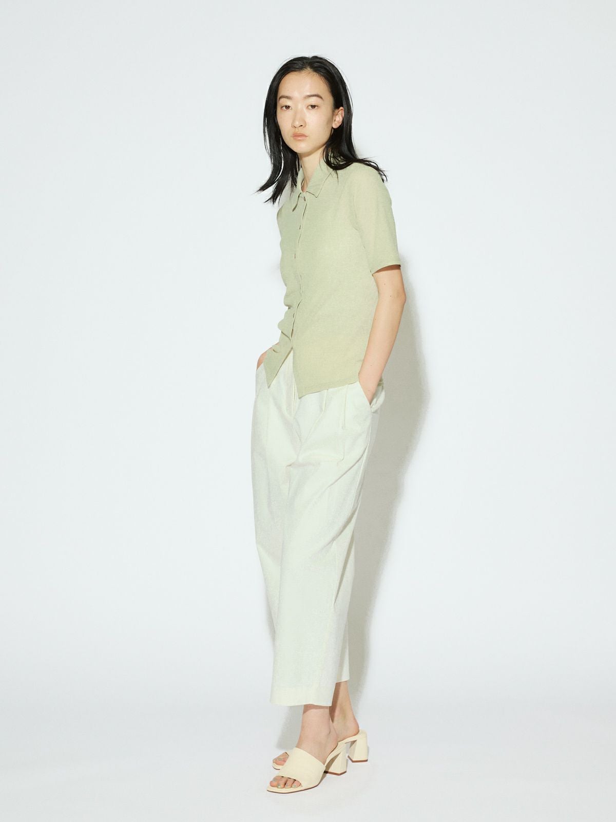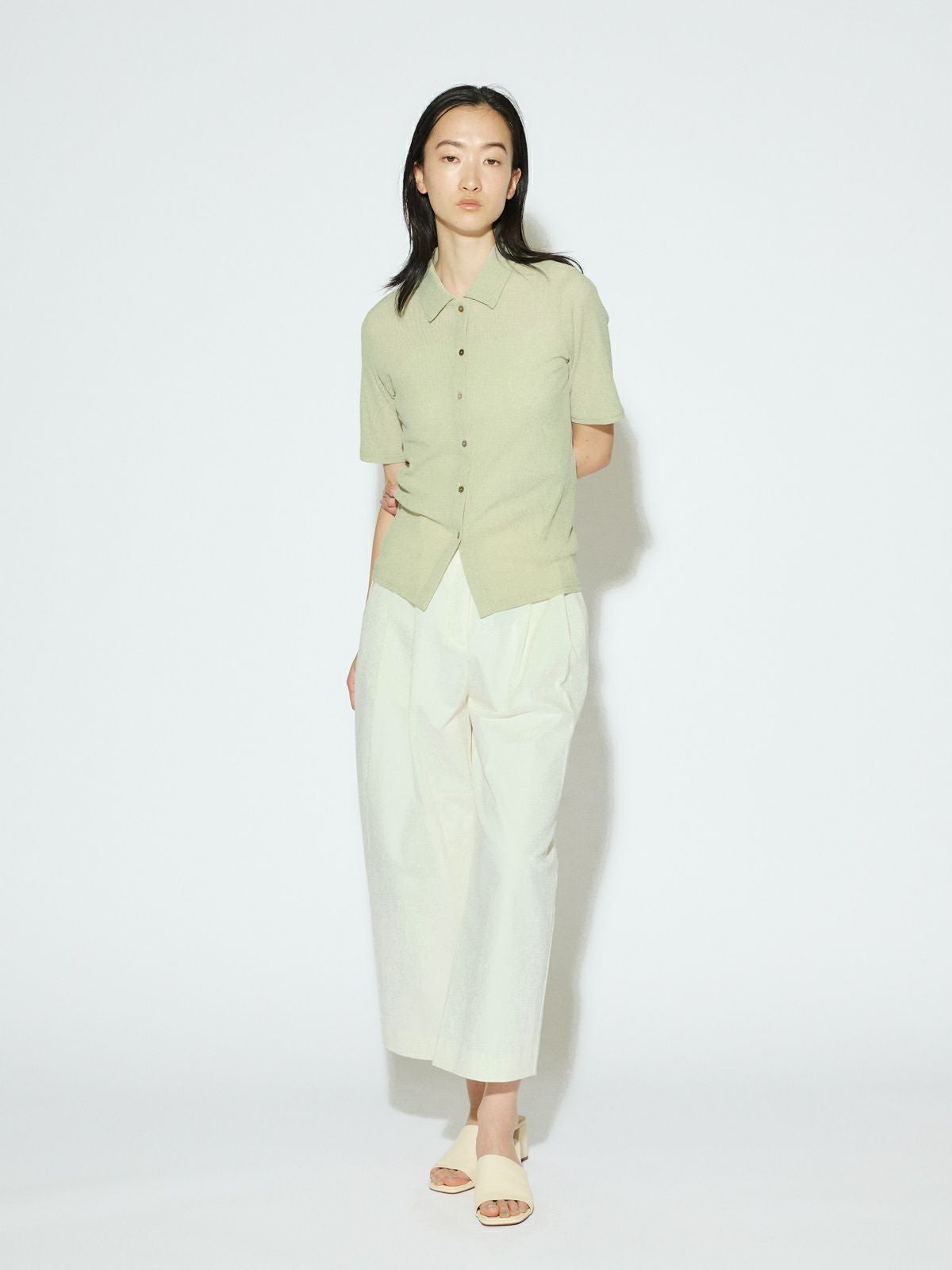 他の画像を見る お気に入りに登録する MIDIUMISOLID for Ladies MIDIUMISOLID for Ladies クロップドワイドパンツ[A] price ¥ 14,080 税込 販売期間 2026/02/27 20:00 〜 ARCHIVES
