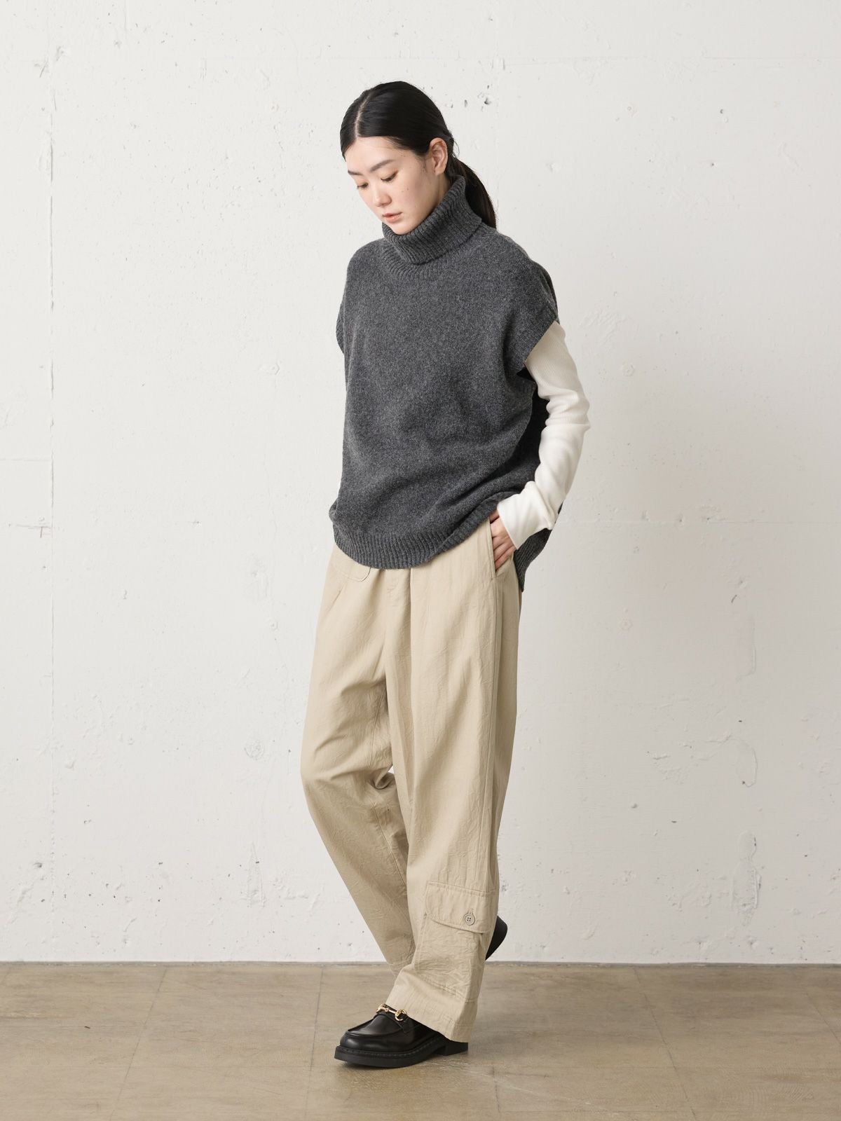 他の画像を見る お気に入りに登録する MidiUmi MidiUmi ウールワイドイージーパンツ original price ¥ 17,930 price ¥ 12,551 税込 販売期間 2026/01/01 0:00 〜 25AW