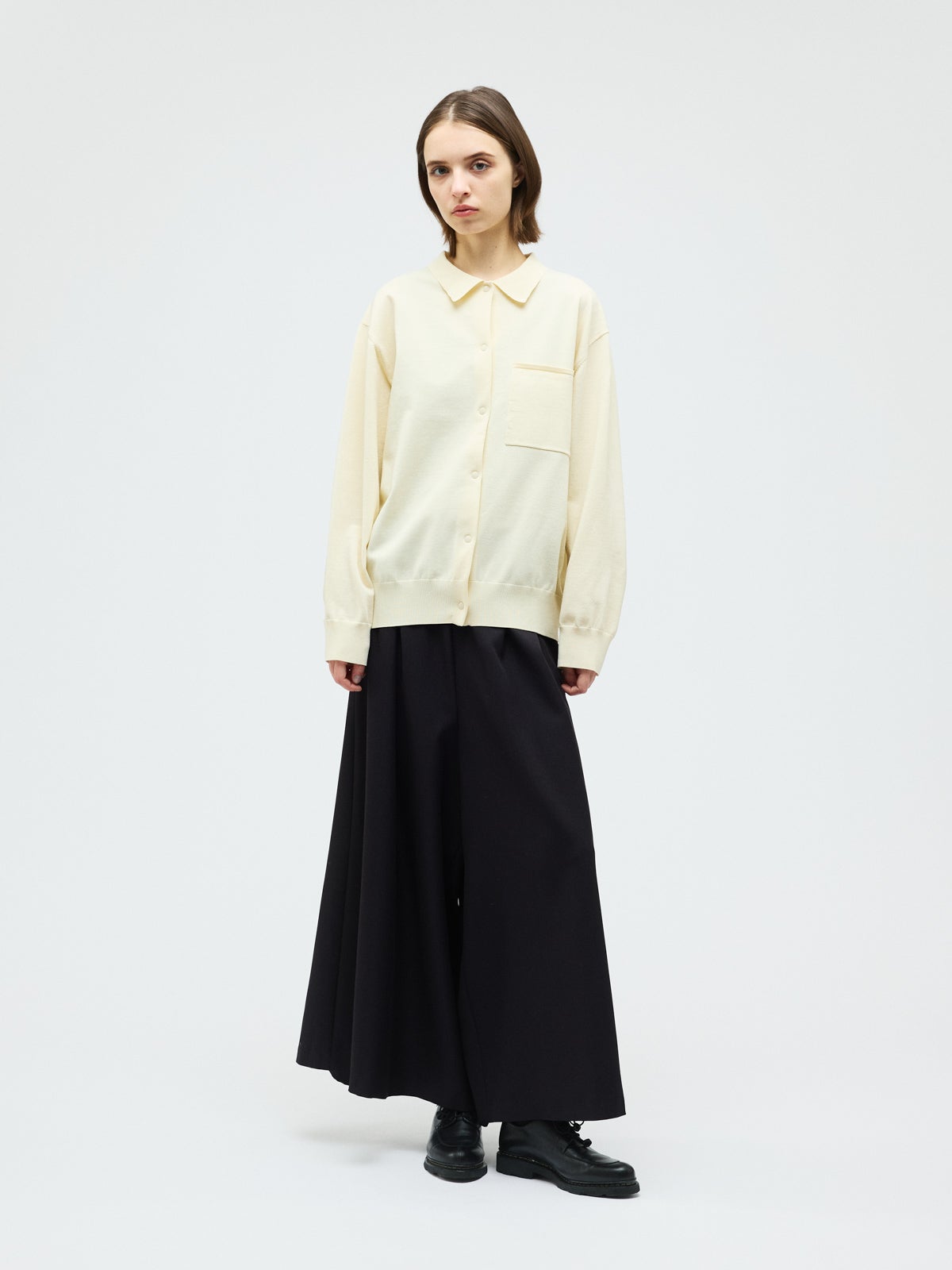 他の画像を見る お気に入りに登録する mizuiro ind mizuiro ind T/Rバンドカラーロングシャツ price ¥ 18,480 税込 販売期間 2026/02/20 20:00 〜 NEW 26SS