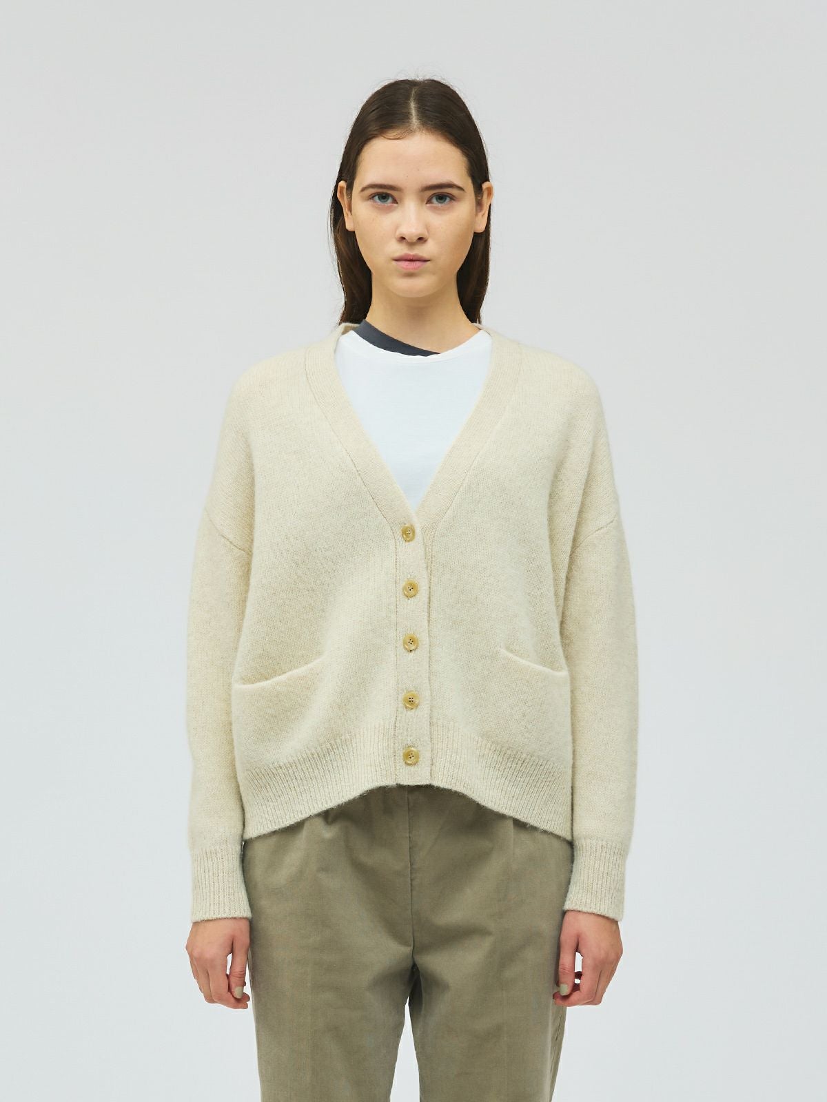 他の画像を見る お気に入りに登録する mizuiro ind mizuiro ind ワイドVネックカーディガン original price ¥ 27,500 price ¥ 19,250 税込 販売期間 2026/01/01 0:00 〜 25AW