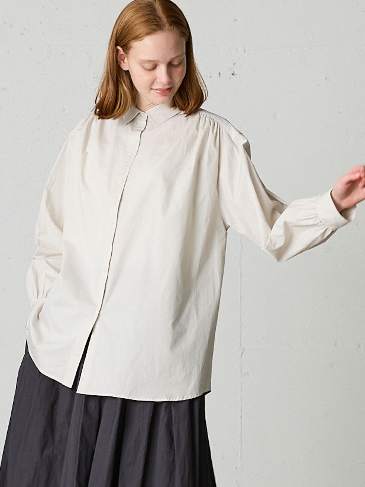MidiUmi MidiUmi ギャザーショルダーワイドシャツ