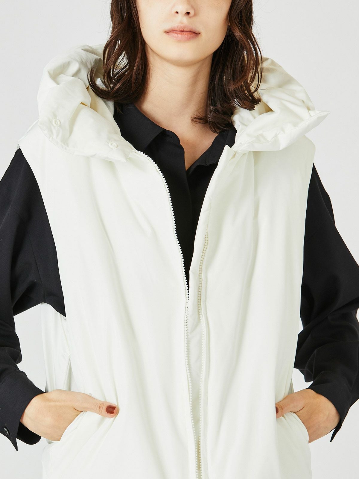 他の画像を見る お気に入りに登録する MIDIUMISOLID for Ladies MIDIUMISOLID for Ladies フード付きダウンベスト(4-1134) original price ¥ 22,000 price ¥ 19,800 税込 販売期間 2026/01/01 0:00 〜 ARCHIVES