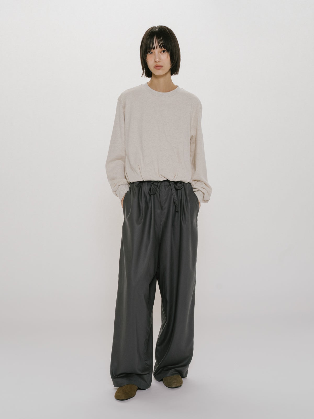 他の画像を見る お気に入りに登録する MIDIUMISOLID for Ladies MIDIUMISOLID for Ladies リラックスパンツ price ¥ 18,700 税込 販売期間 2026/03/05 20:00 〜 NEW 26SS