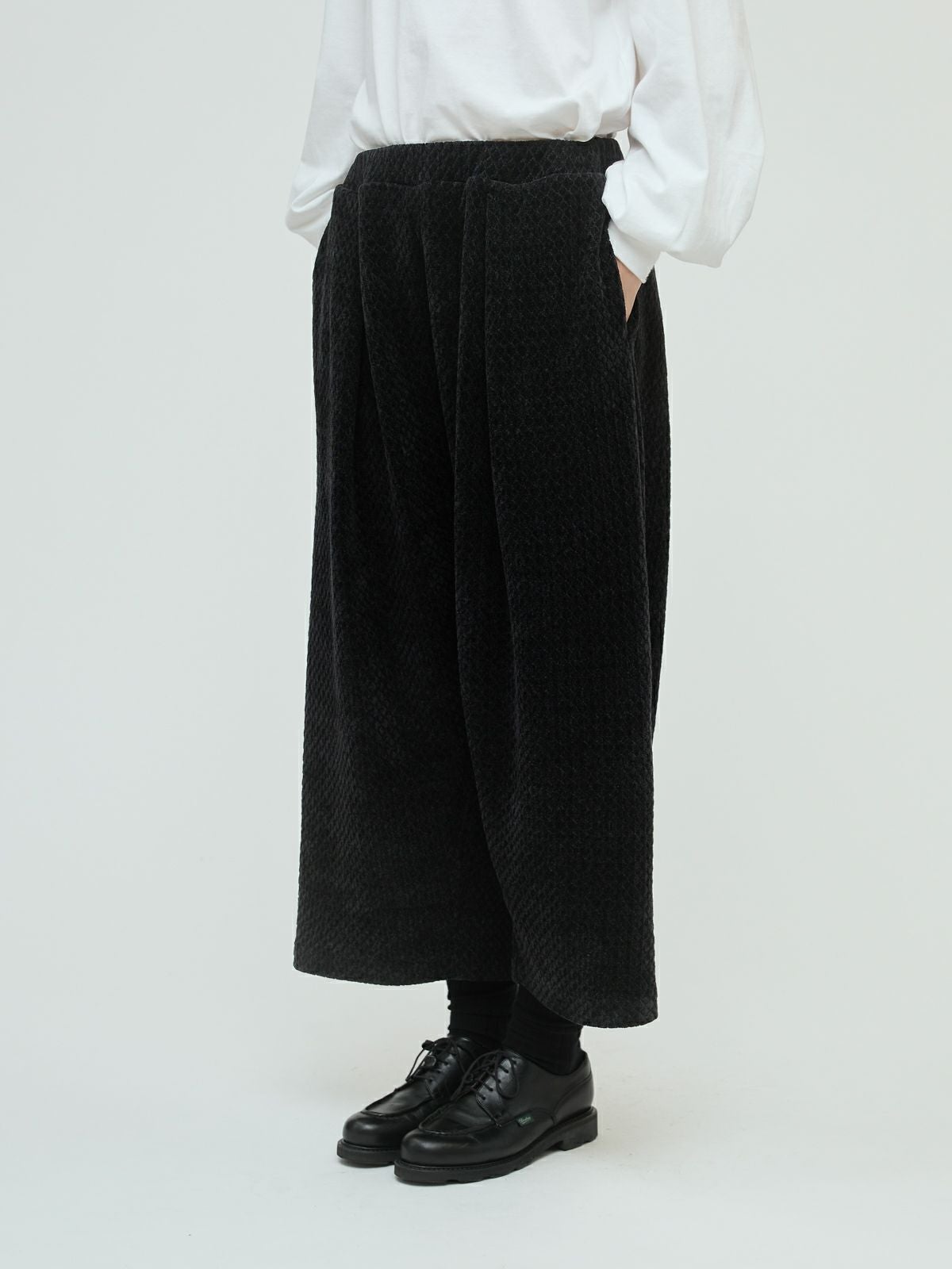 他の画像を見る お気に入りに登録する mizuiro ind mizuiro ind ベロアジャカードタックパンツ original price ¥ 19,800 price ¥ 13,860 税込 販売期間 2026/01/01 0:00 〜 25AW