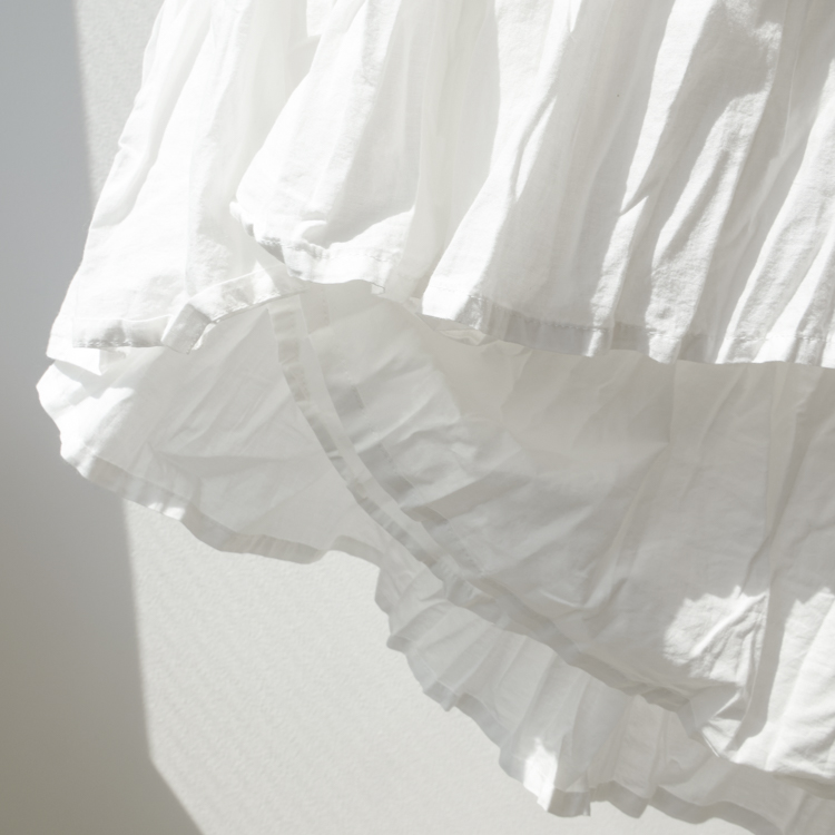 軽やかなローンのコットンレースを贅沢に使用し、丁寧な洗い加工を施すことで、素材本来の柔らかさと豊かな表情を引き出した1枚。レースの繊細な美しさに、程よくラフなニュアンスが重なり、上品ながらもこなれた印象を演出します。