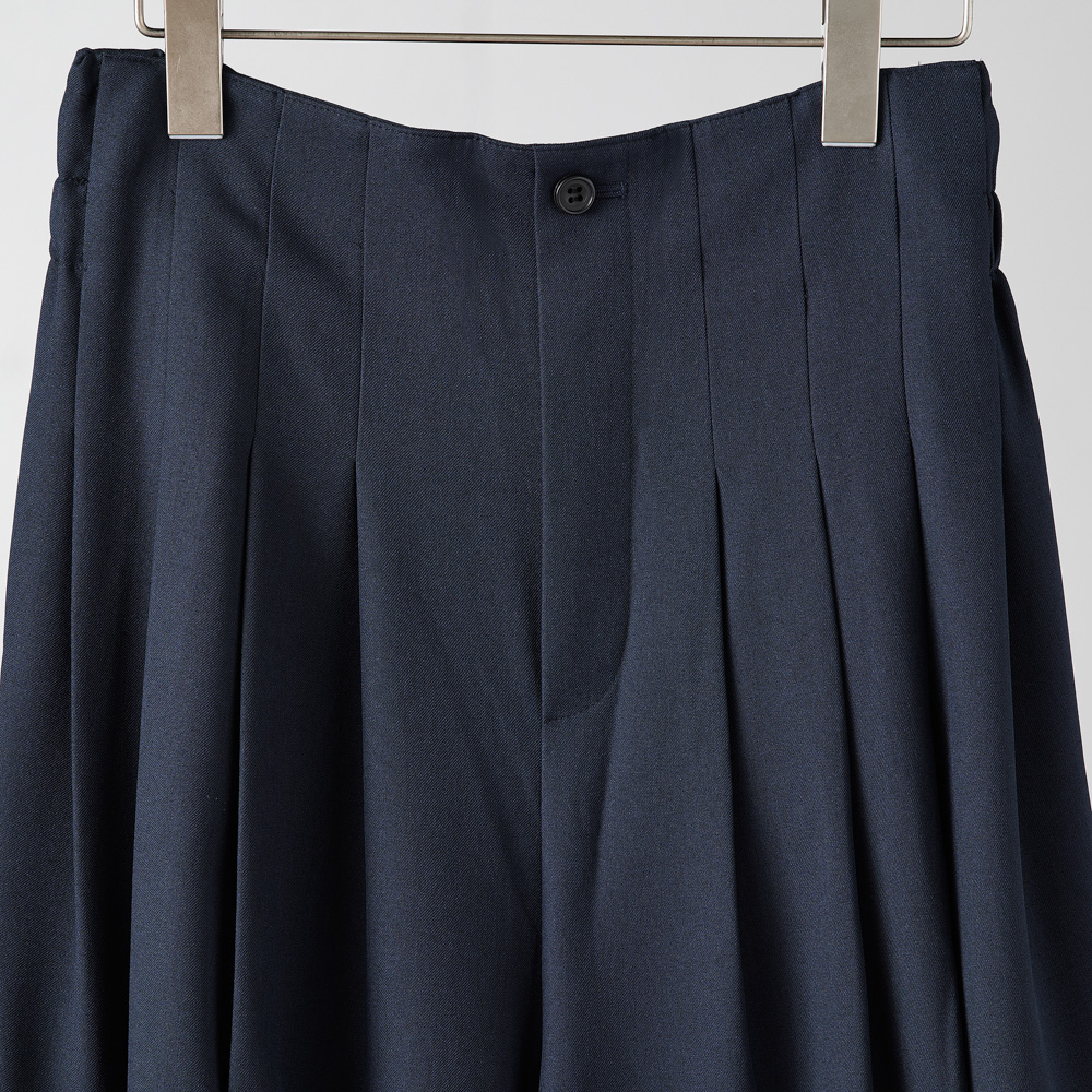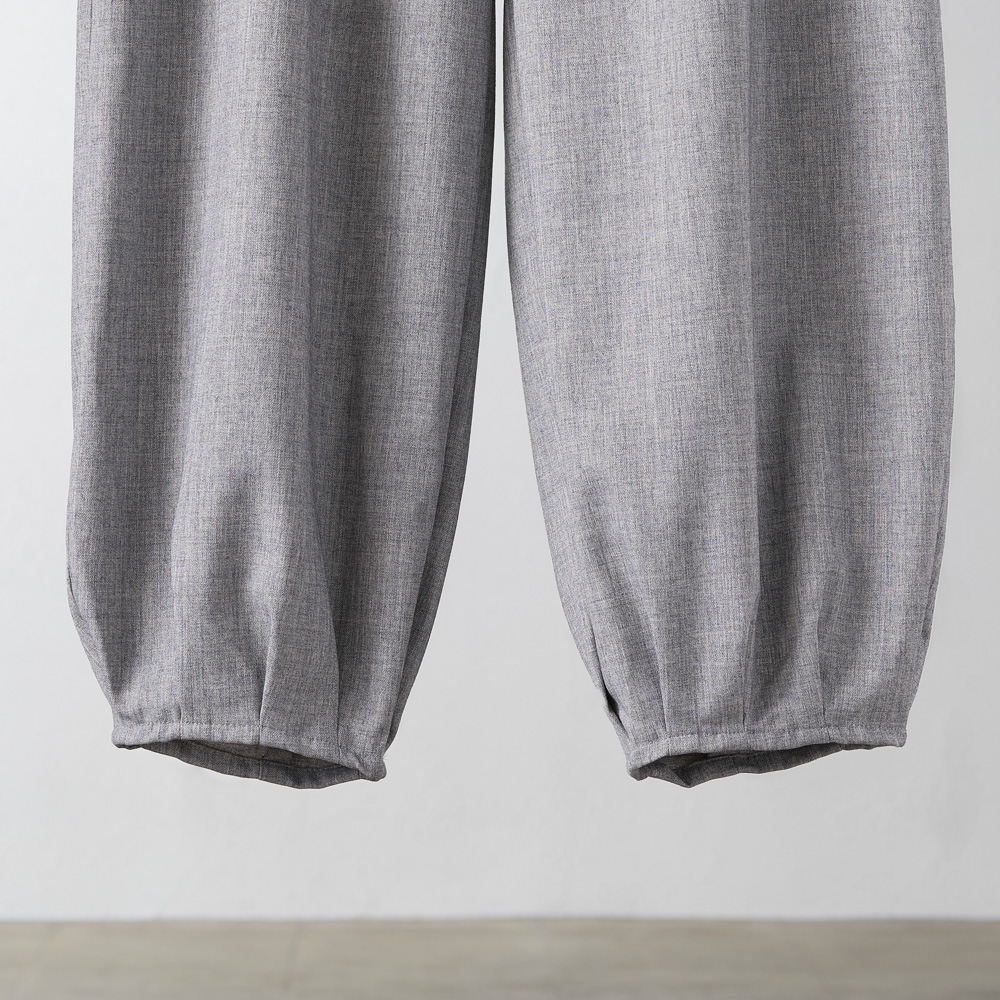 均等にとった裾のタックで窄まるようなシルエットが特徴的。ゆるっと履けてこなれ感のあるスタイルにまとまります。