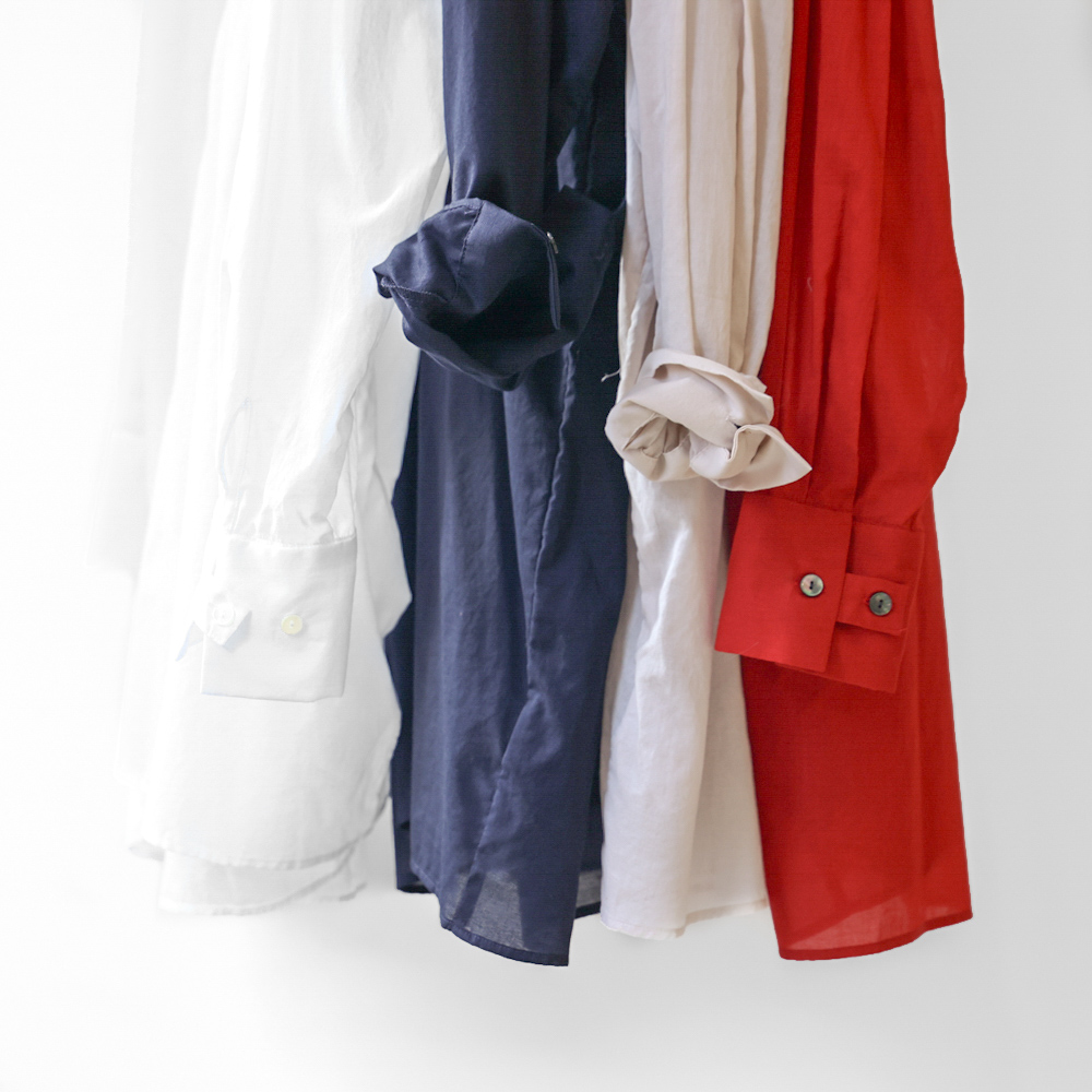 コットン100%でさらりとした着心地のシャツ。ニットなどに重ねて質感の違いを楽しむスタイリングにも最適です。カフスには調節可能な釦を配し、袖幅を変えたり折り返したりして、着こなしに変化をつけられるデザイン。シンプルながらもディテールにこだわった、着回しの幅が広い一枚です。